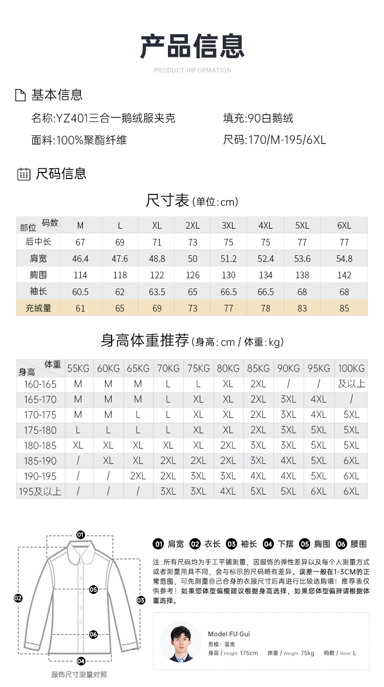 【实付满399送保温杯】【三合一鹅绒服夹克】可拆卸内胆羽绒外套防风保暖休闲棉服YZ401