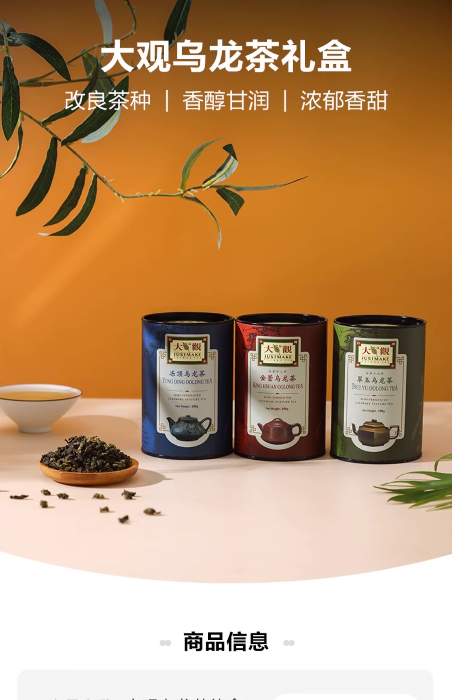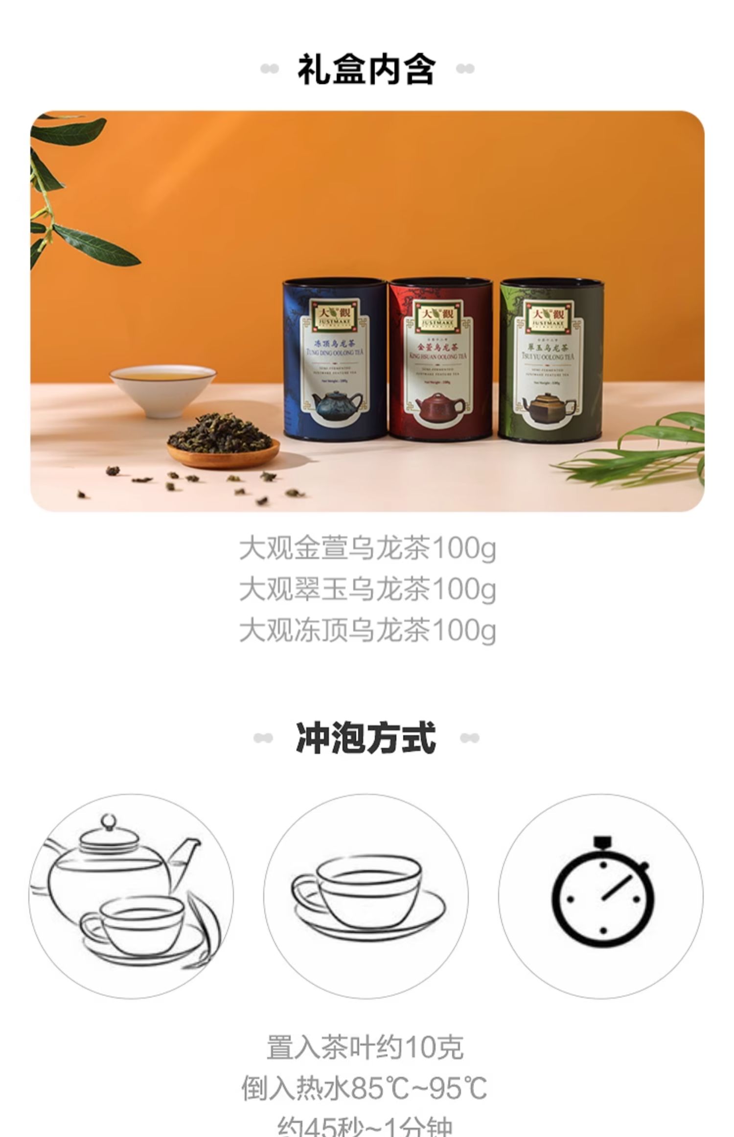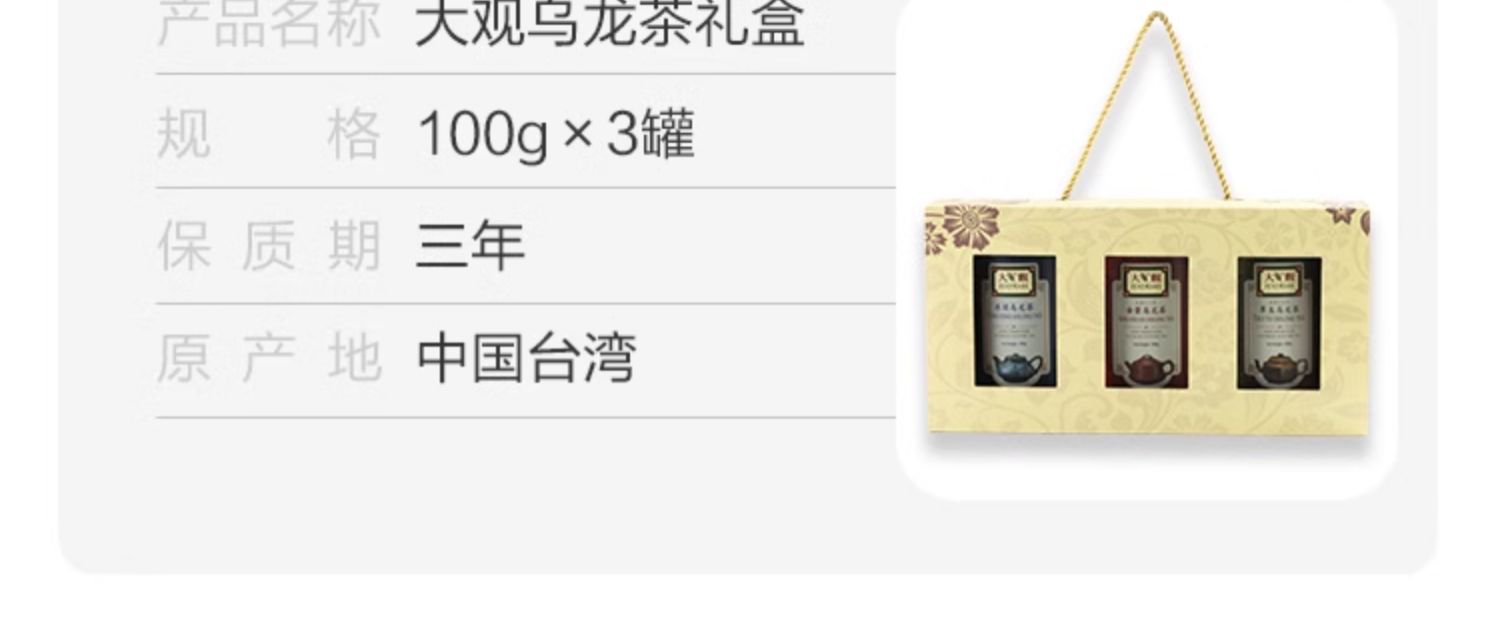 中国台湾宏益大观三联罐礼盒100g*3/025602 金萱冻顶翠玉乌龙茶礼盒