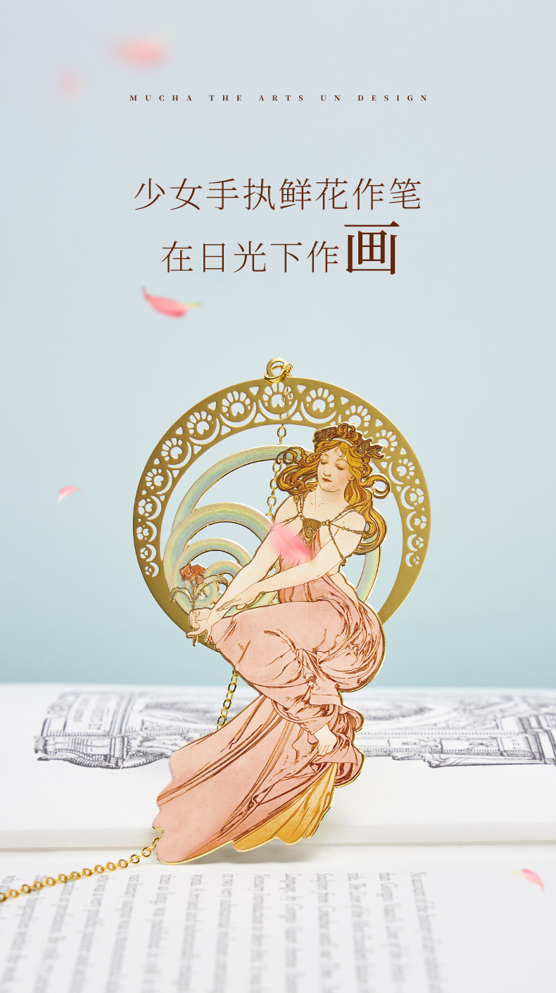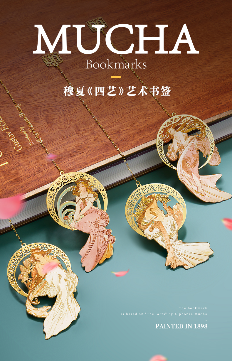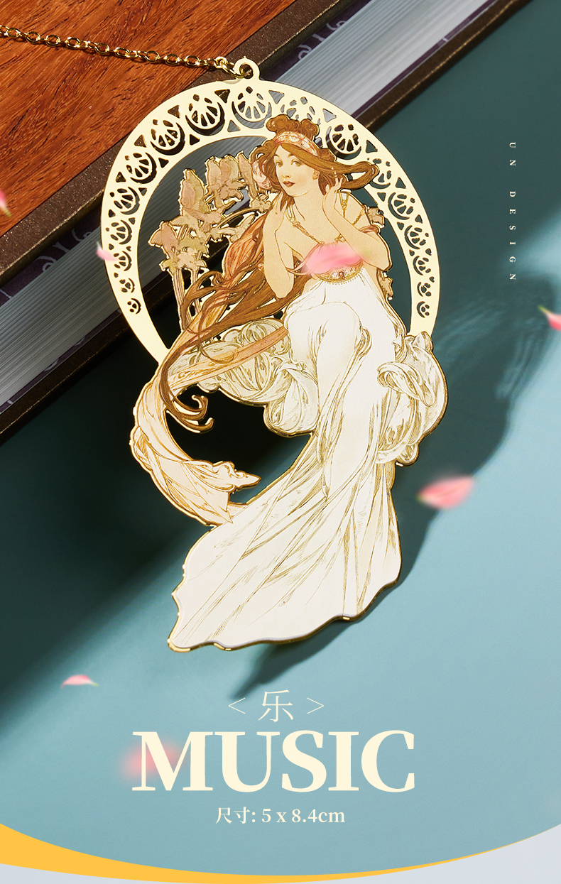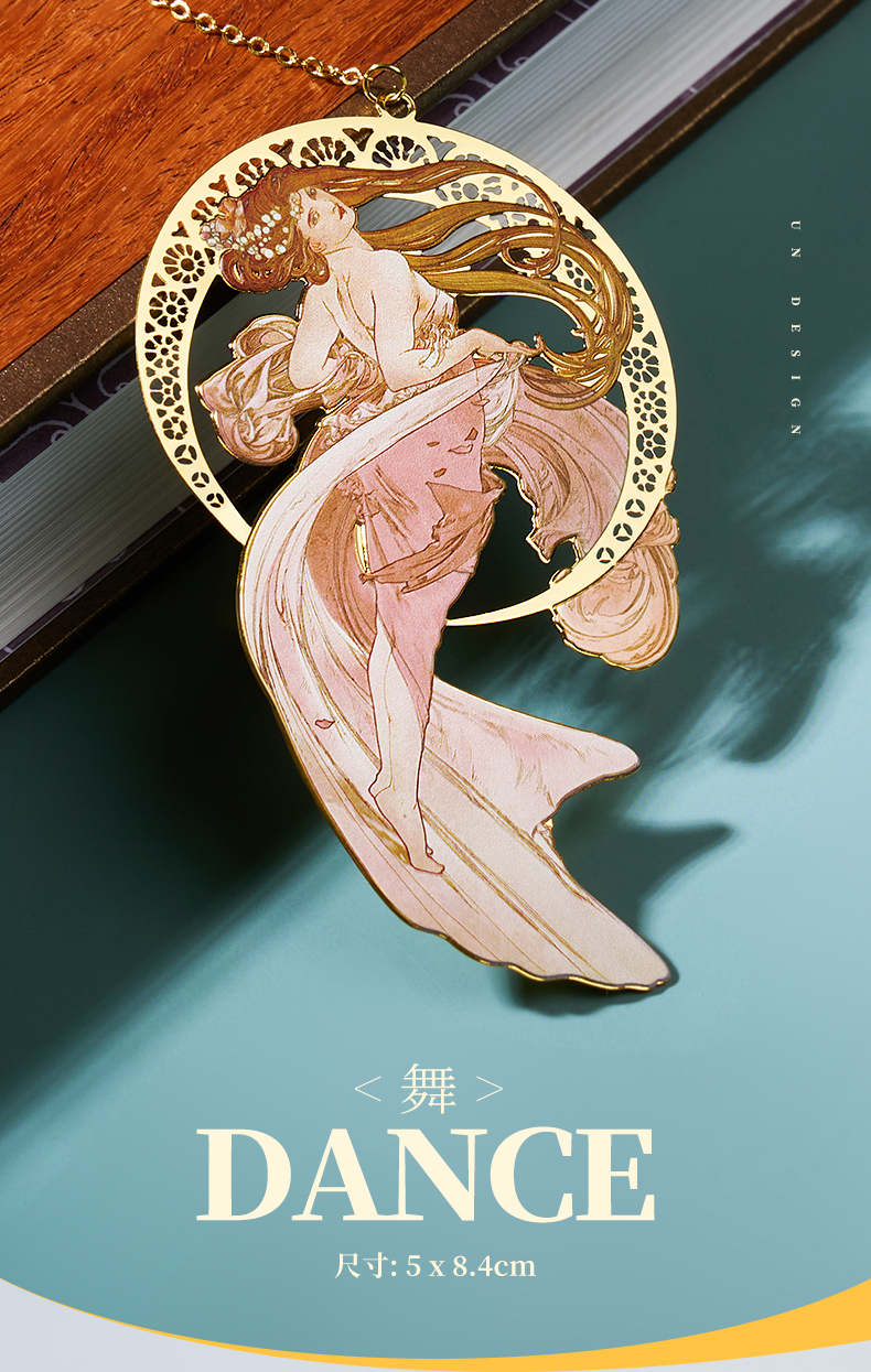 MUCHA穆夏【四艺—舞】经典插画艺术金属链饰书签 20世纪时尚先锋新艺术运动 唯美大师名画复古优雅文艺礼品黄铜【中商文创】