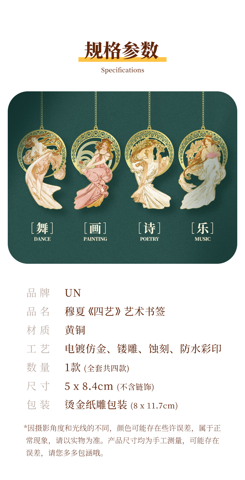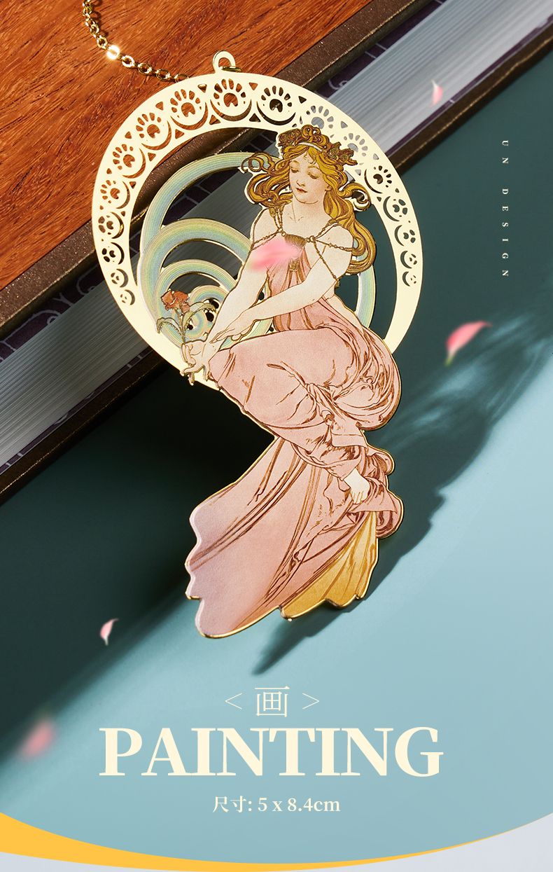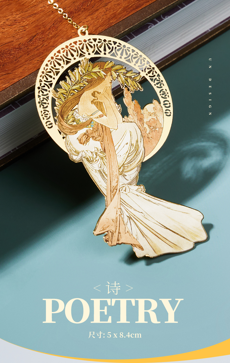 MUCHA穆夏【四艺—舞】经典插画艺术金属链饰书签 20世纪时尚先锋新艺术运动 唯美大师名画复古优雅文艺礼品黄铜【中商文创】
