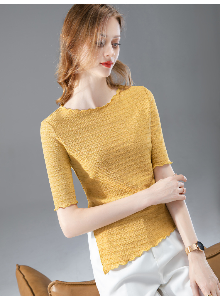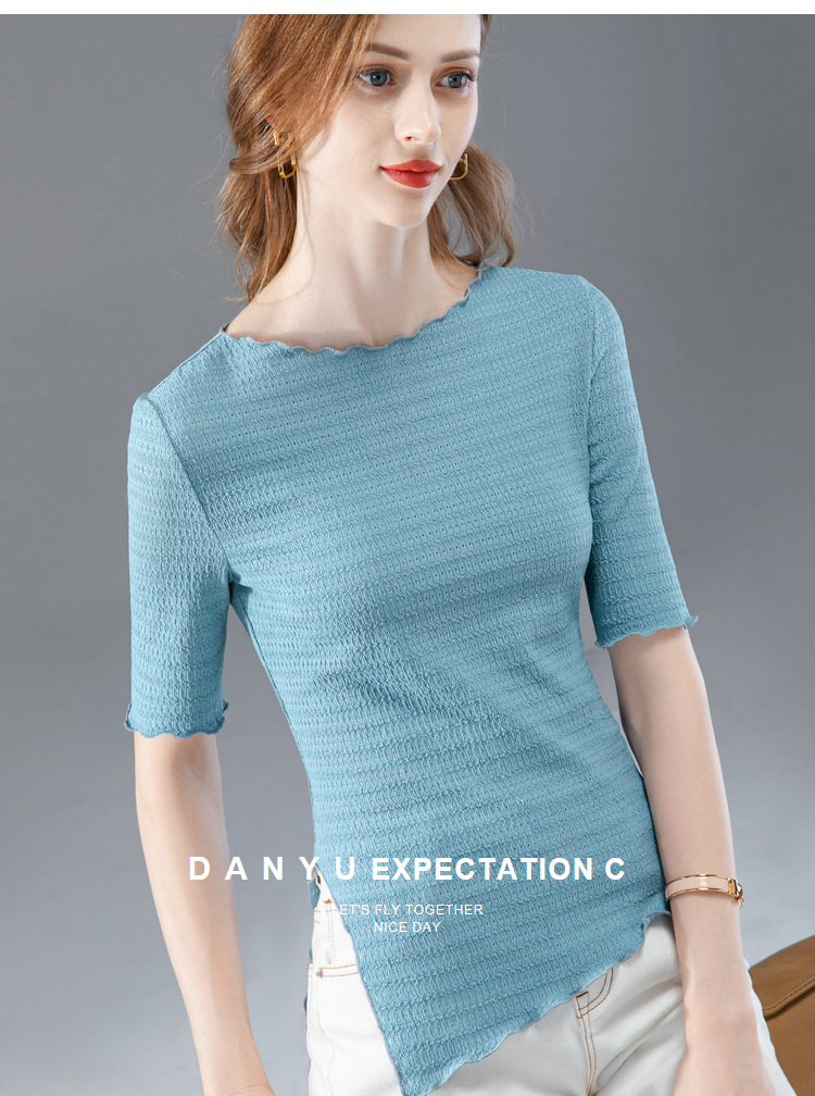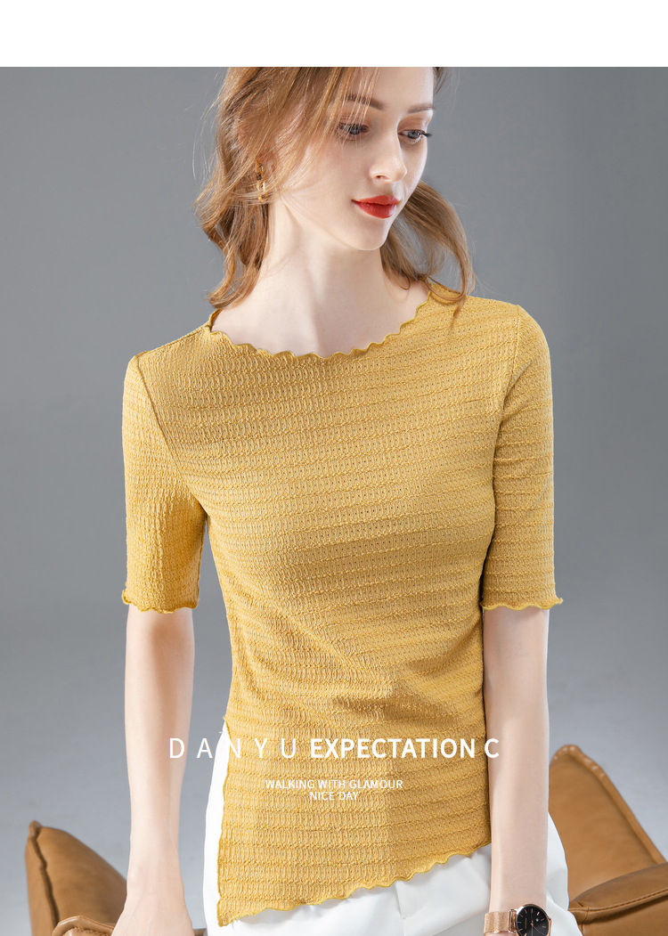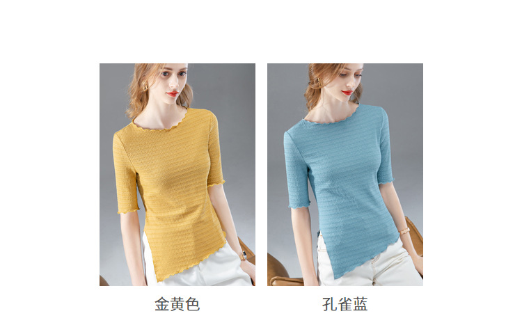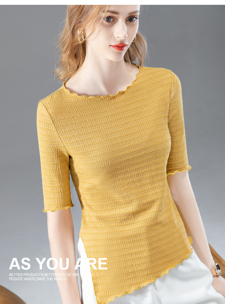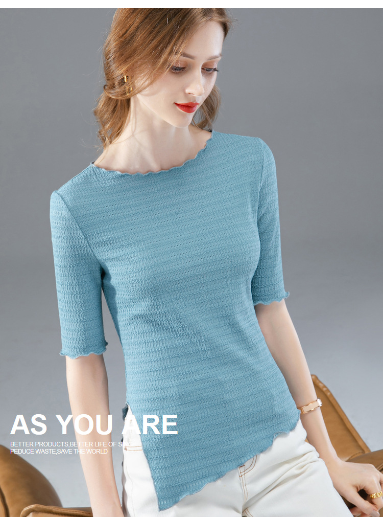 中袖t恤减龄木耳边洋气小衫,不规则开叉上衣SG-T2C0022