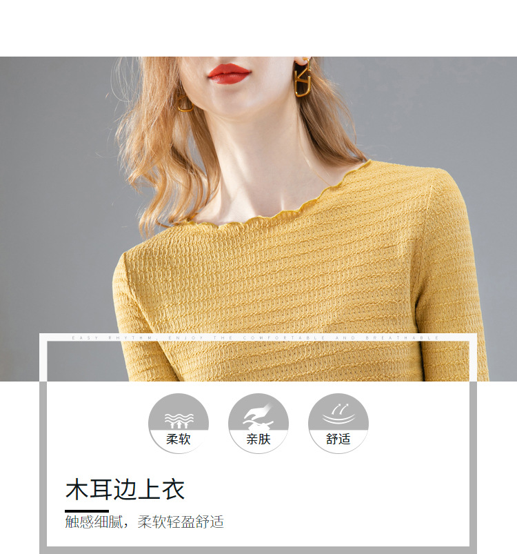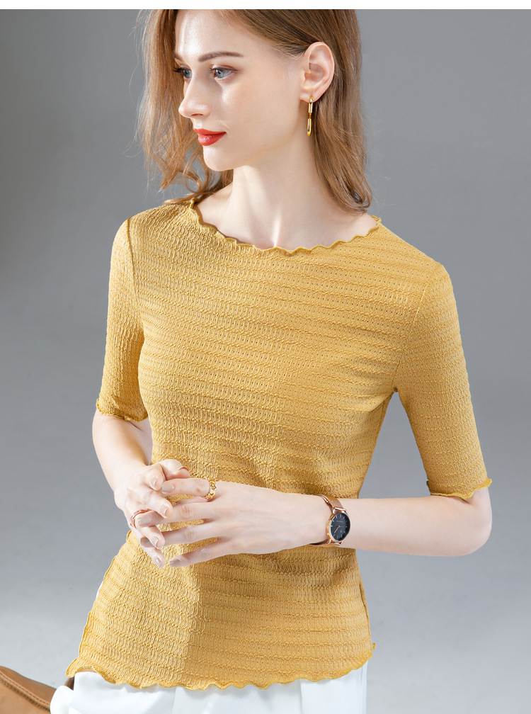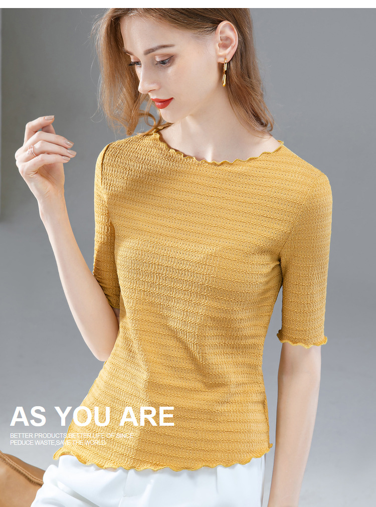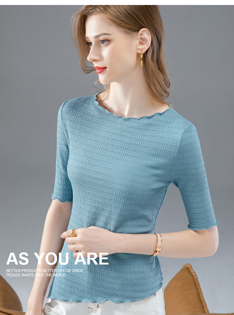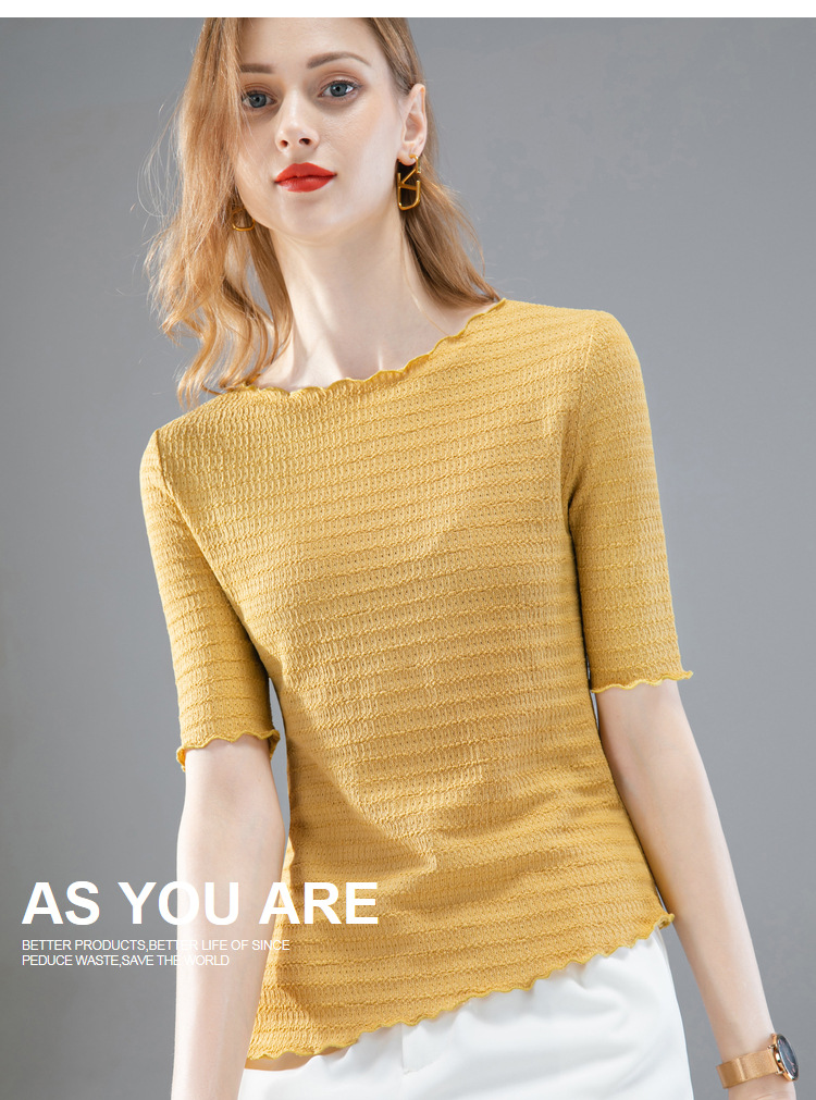 中袖t恤减龄木耳边洋气小衫,不规则开叉上衣SG-T2C0022
