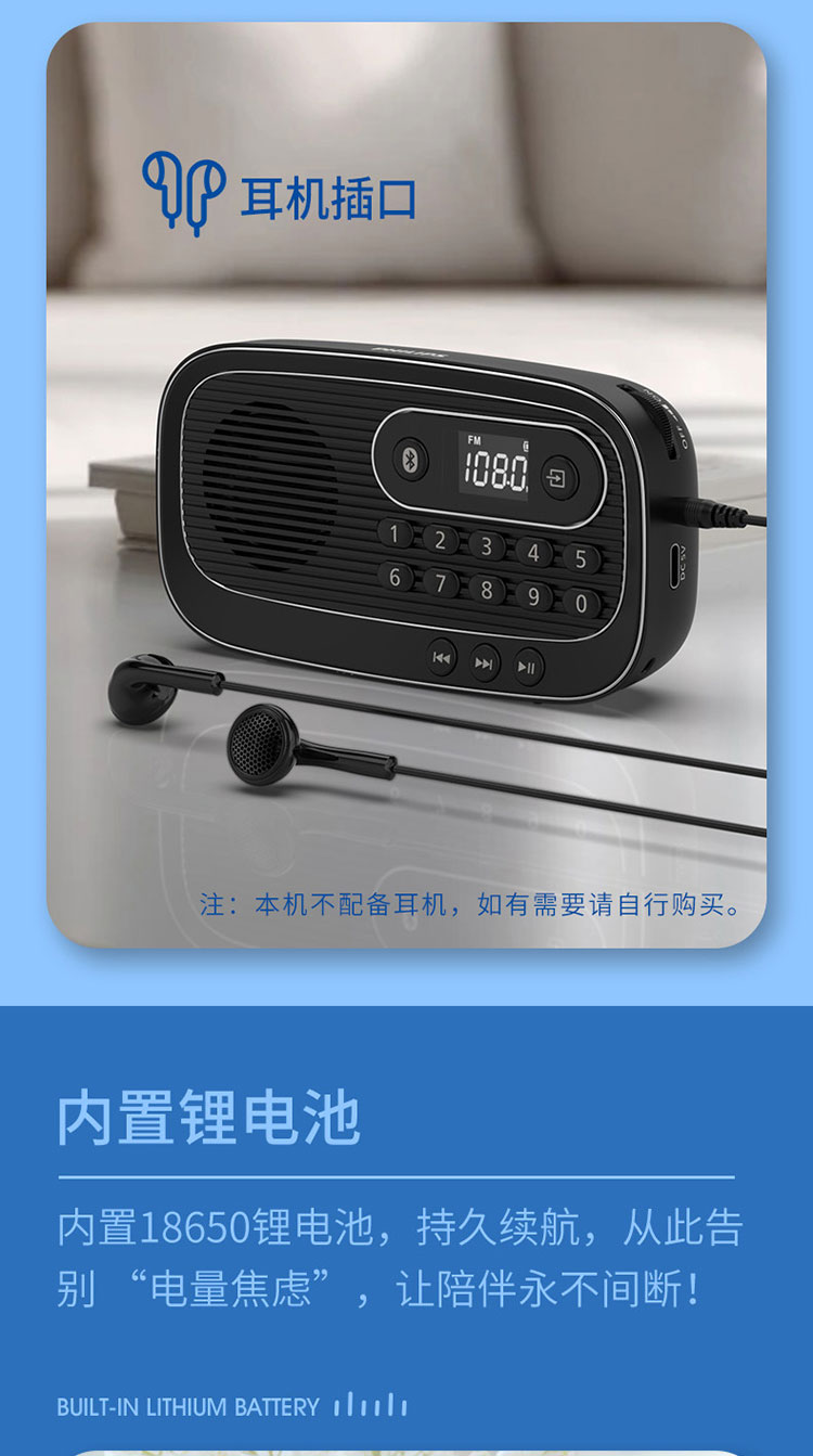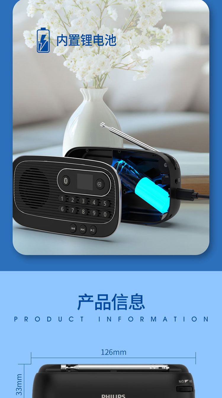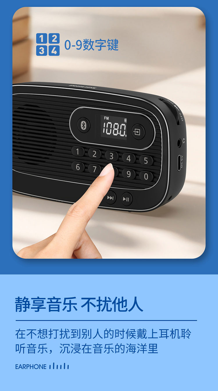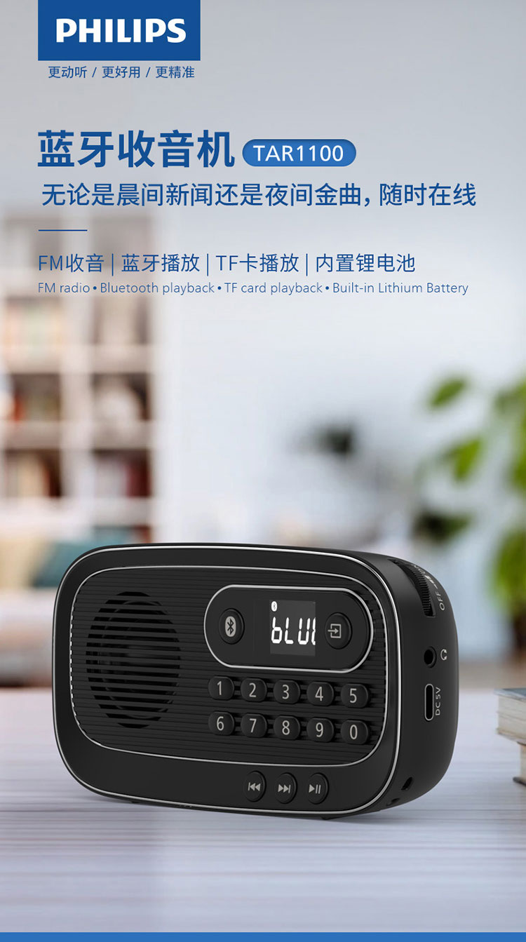飞利浦(PHILIPS)便携多功能收音机蓝牙音箱 FM调频TF卡播放数字选曲 老人户外陪伴半导体新闻评书音箱 TAR1100