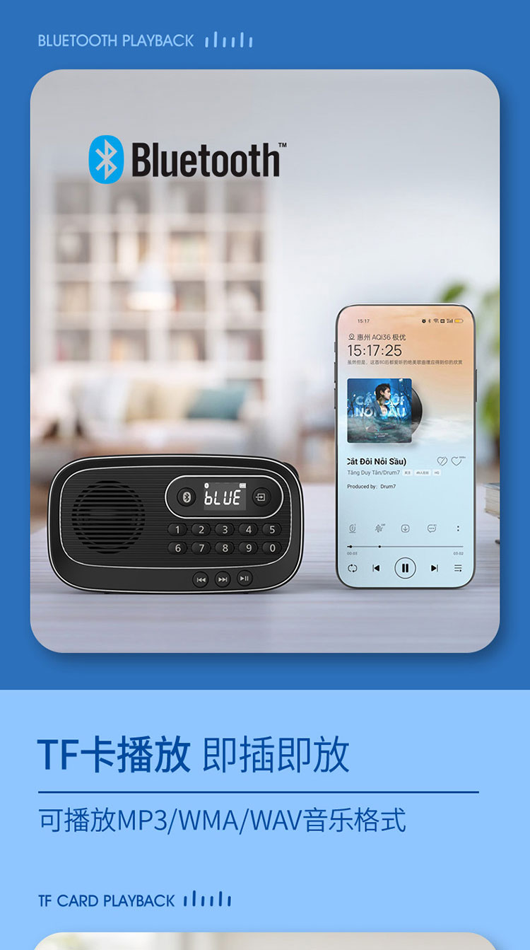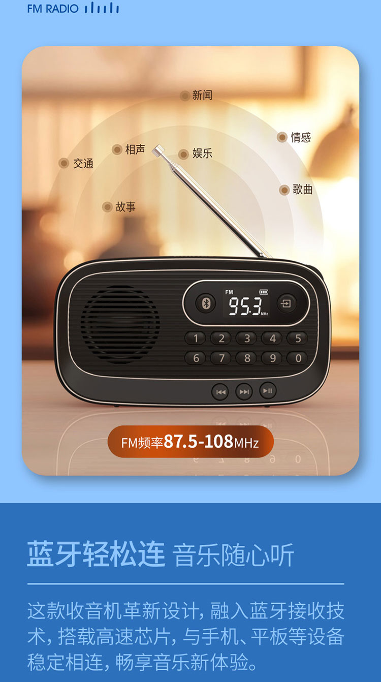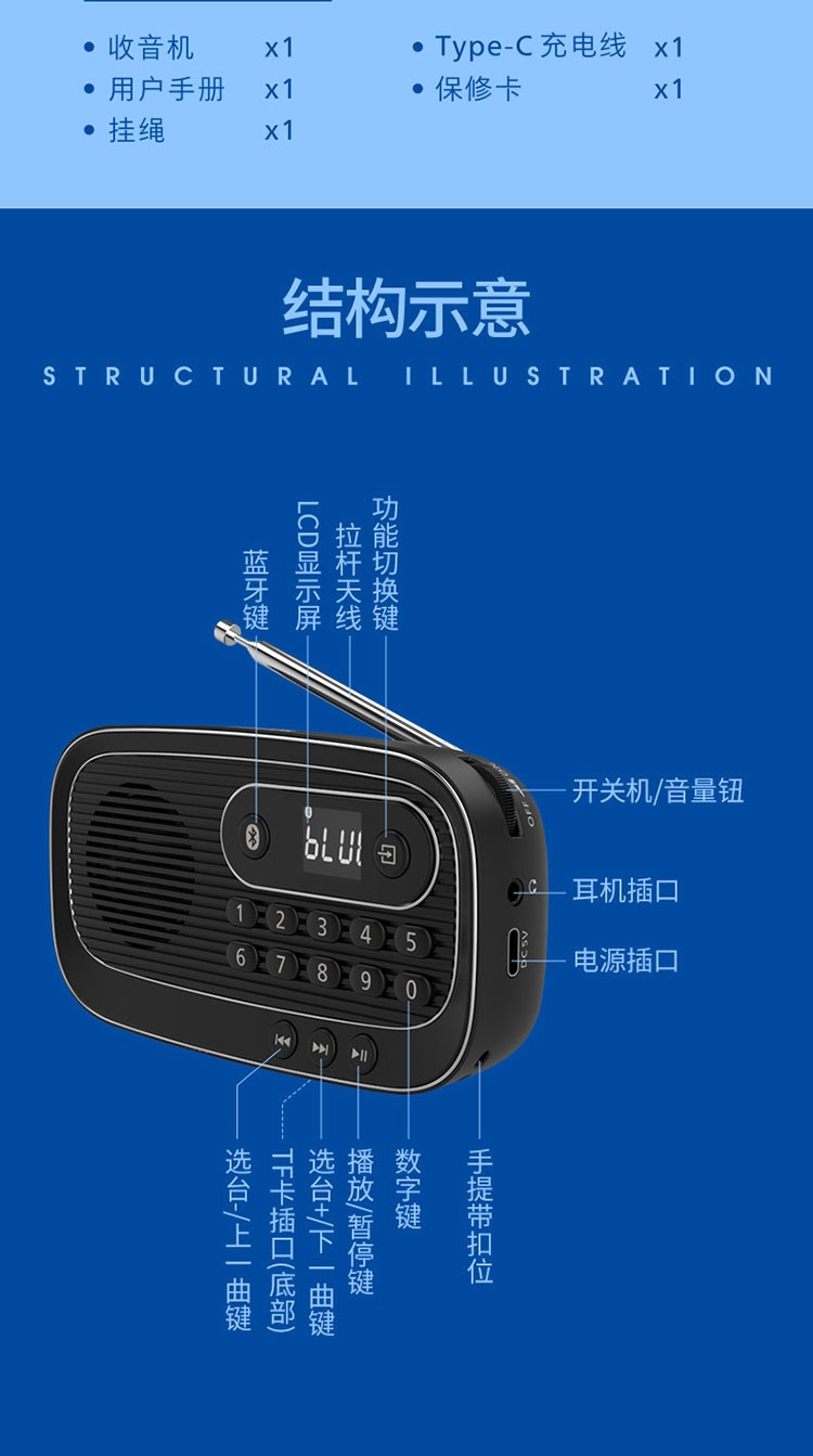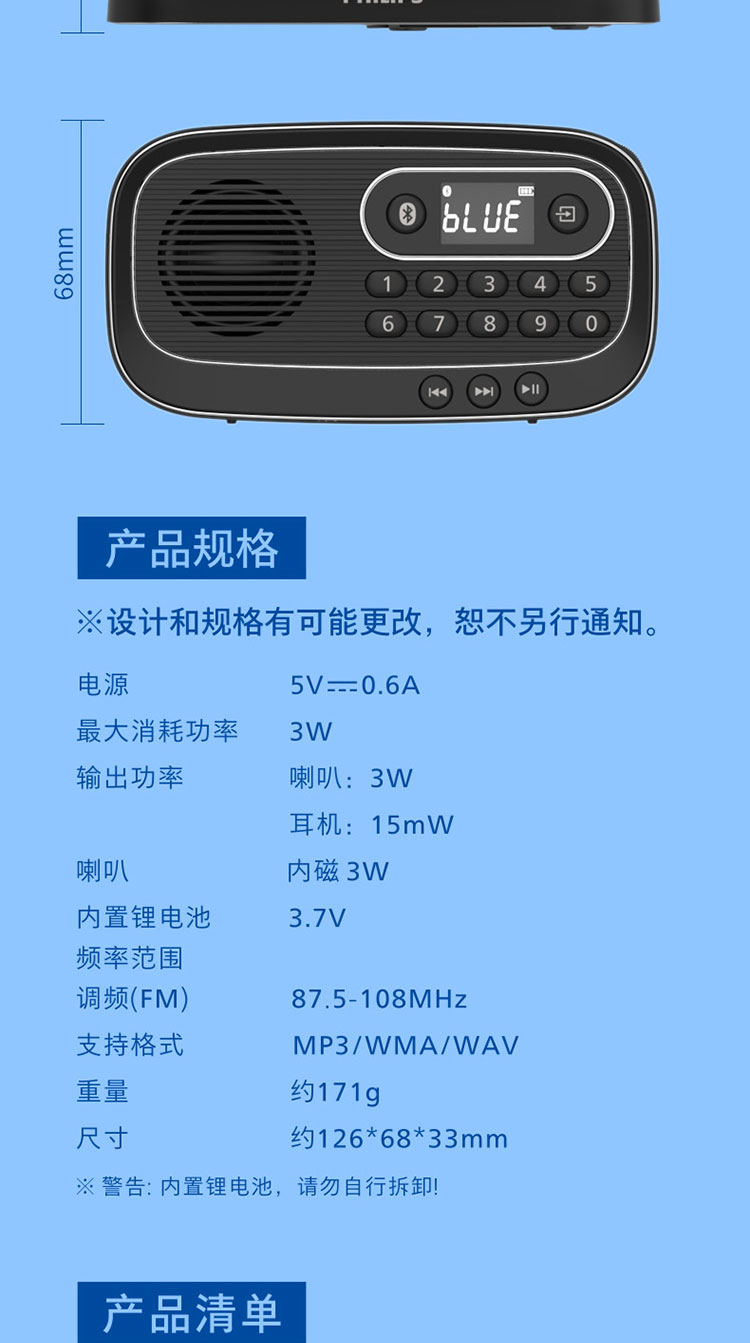 飞利浦(PHILIPS)便携多功能收音机蓝牙音箱 FM调频TF卡播放数字选曲 老人户外陪伴半导体新闻评书音箱 TAR1100