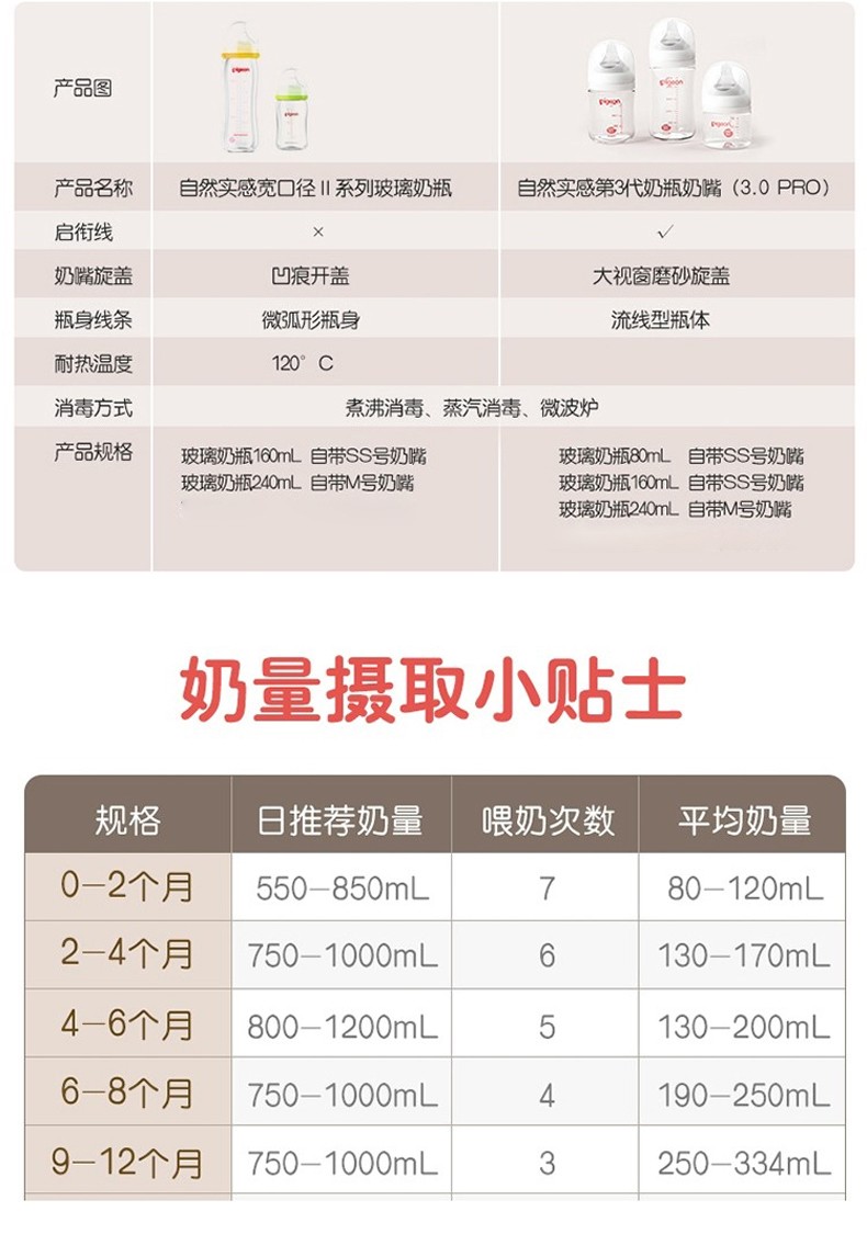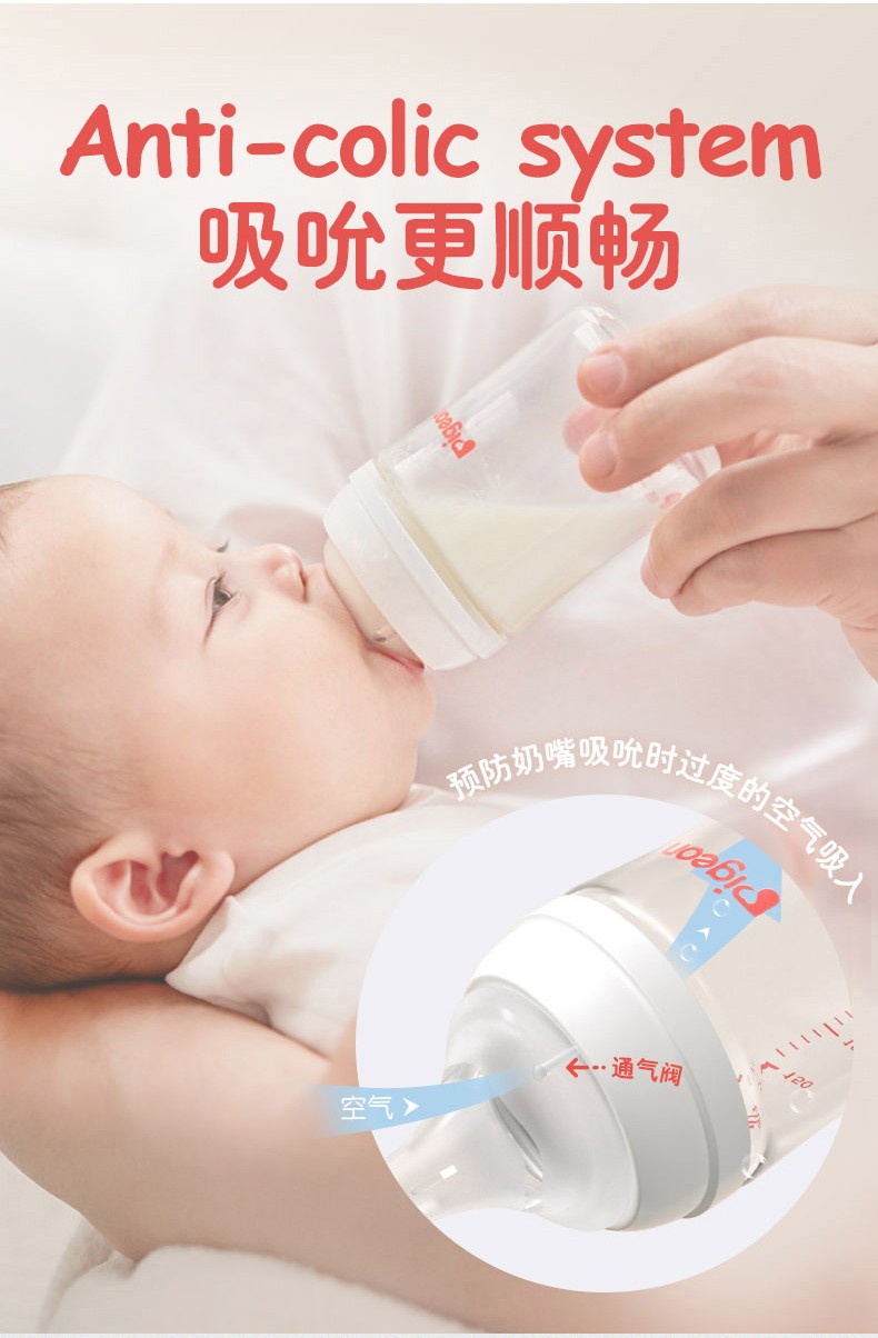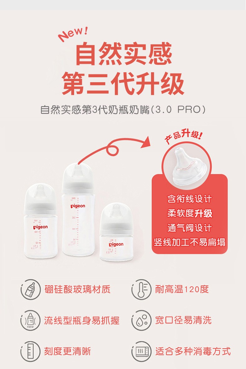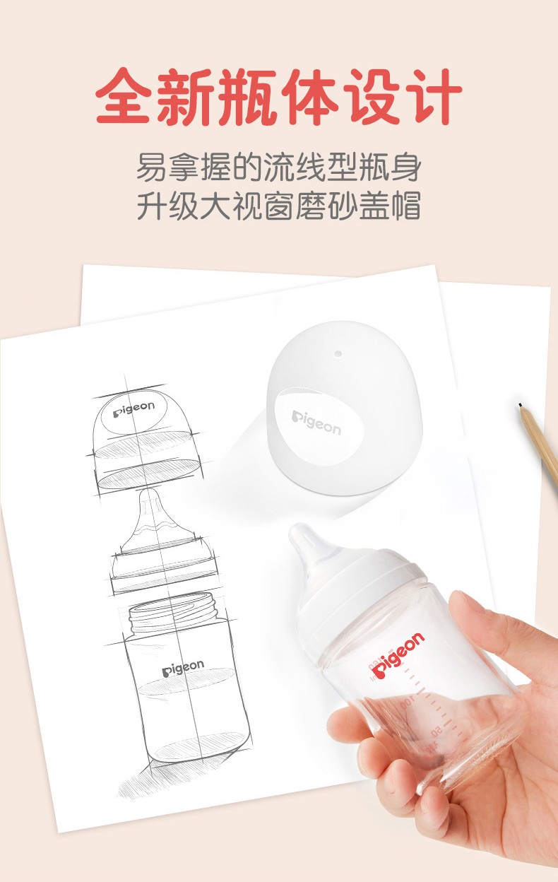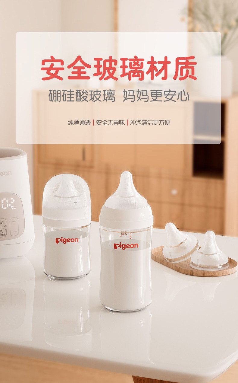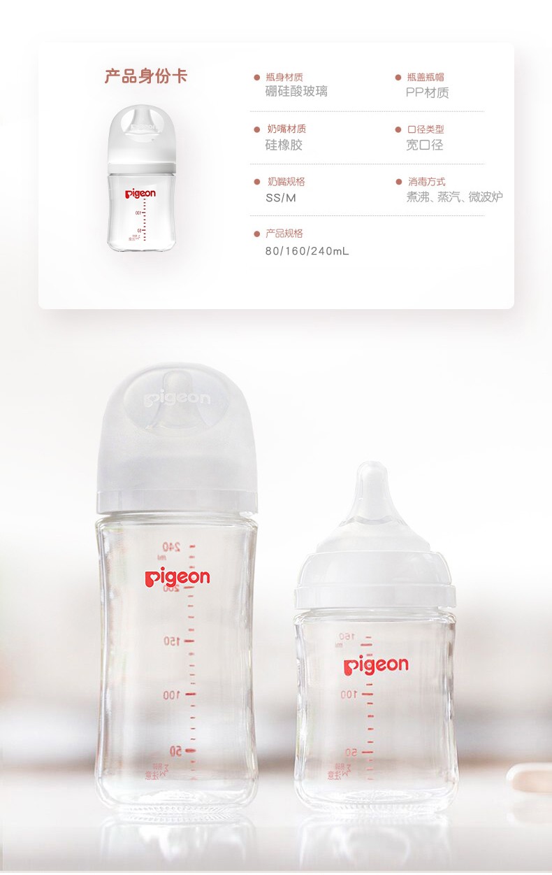 日本贝亲Pigeon玻璃奶瓶240ml音符图案 24778