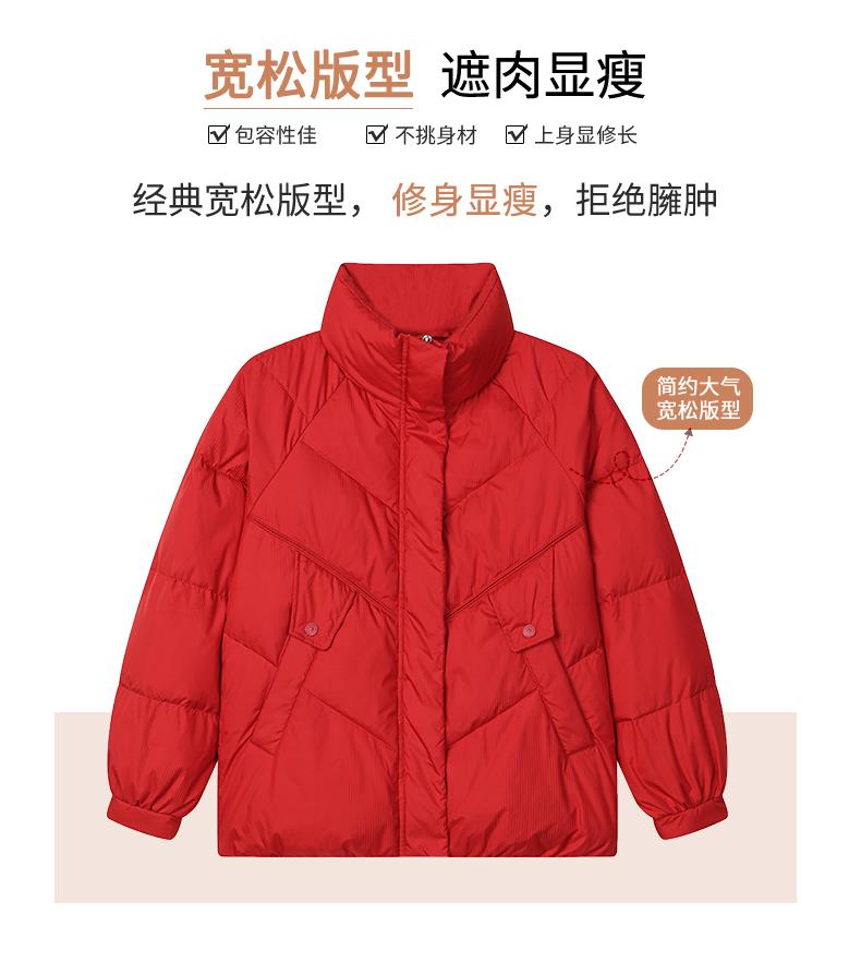 短款羽绒服女冬季2023新款中年妈妈红色羽绒衣保暖轻薄白鸭绒外套