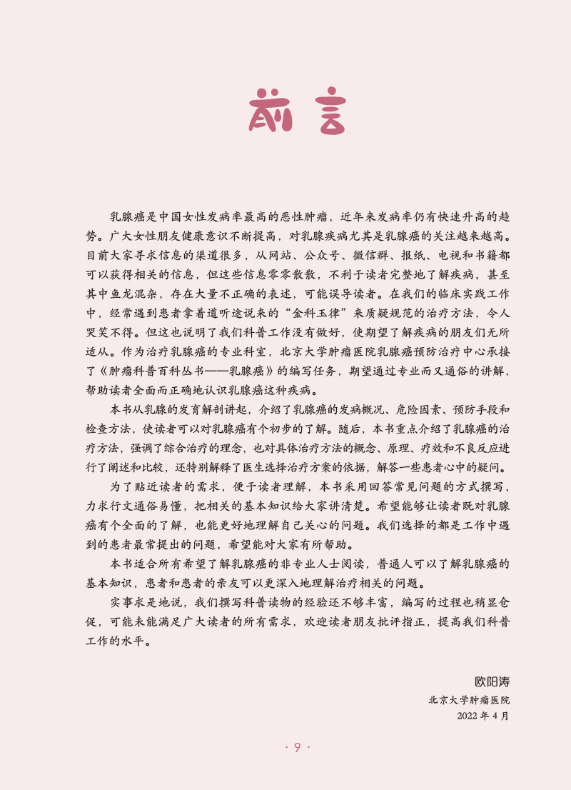 乳腺癌 肿瘤科普百科丛书 欧阳涛主编 乳腺癌发病概况危险因素预防手段检查治疗方法 基本知识科普书 人民卫生出版社9787117332729