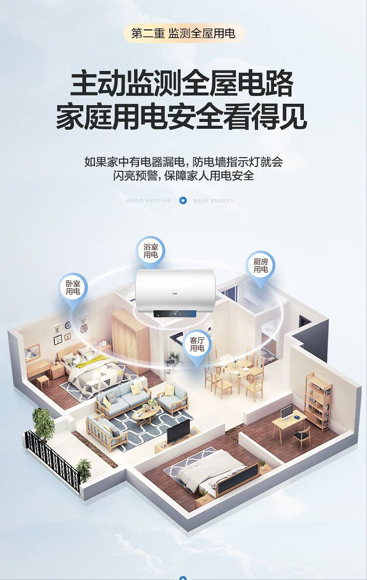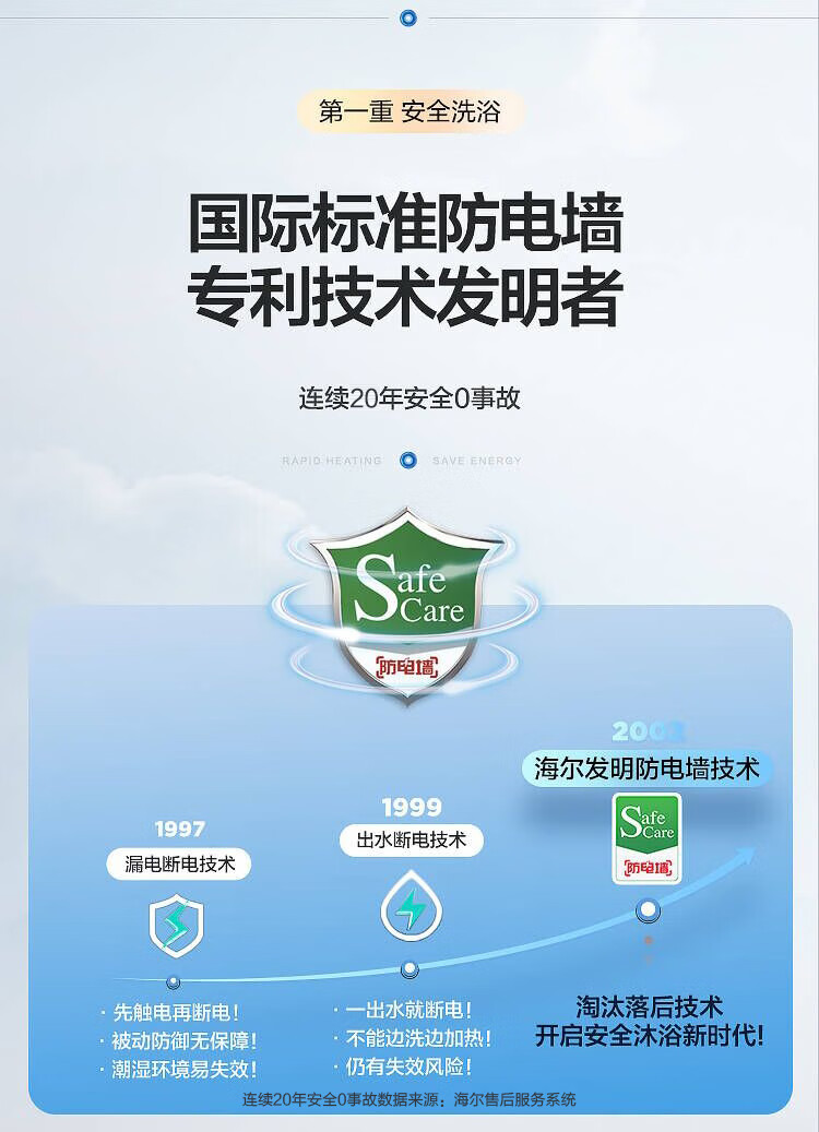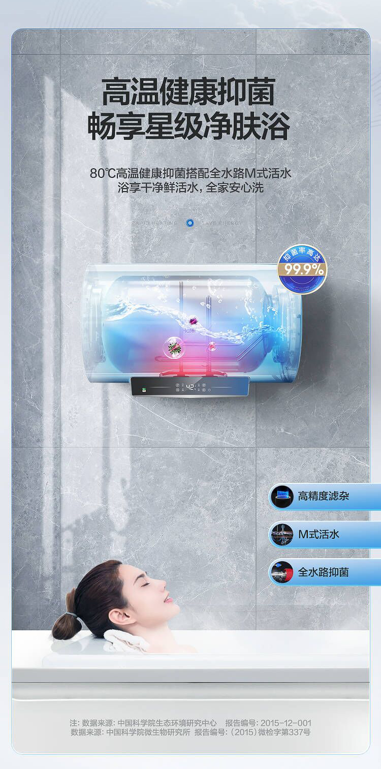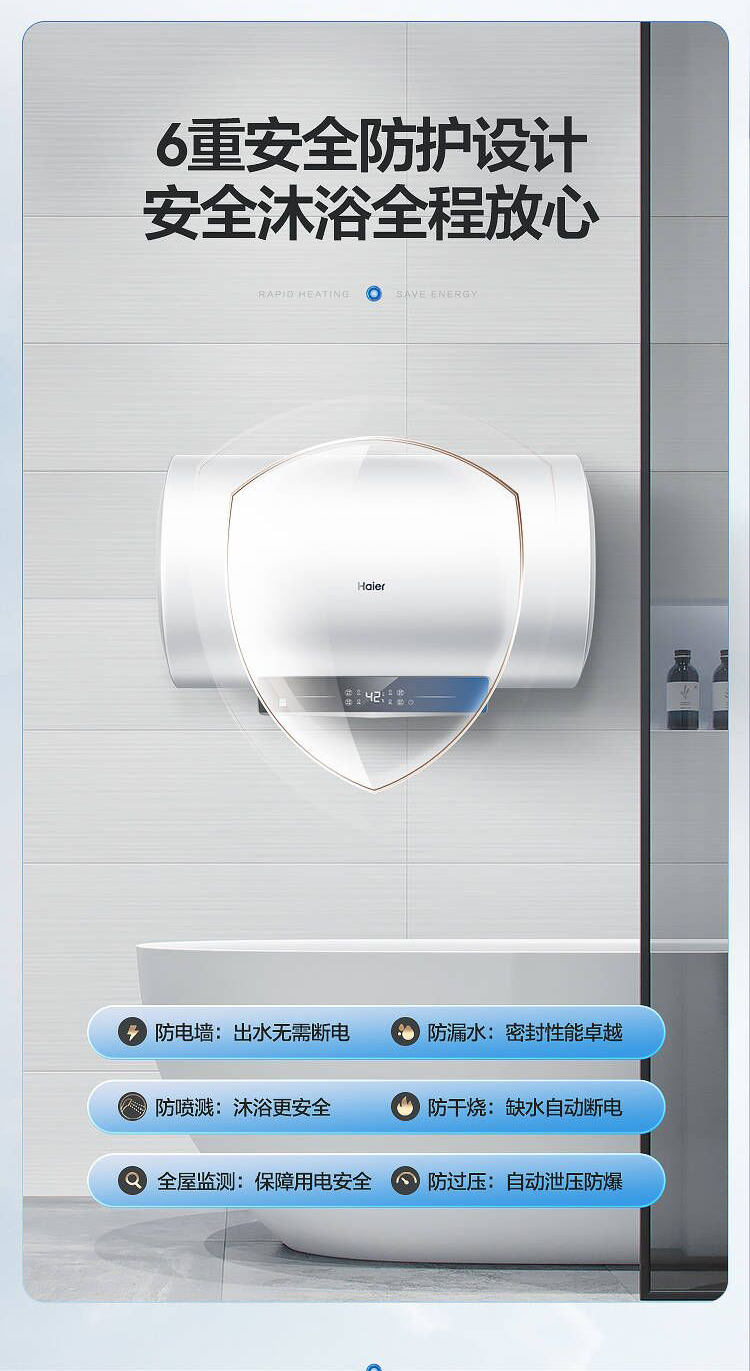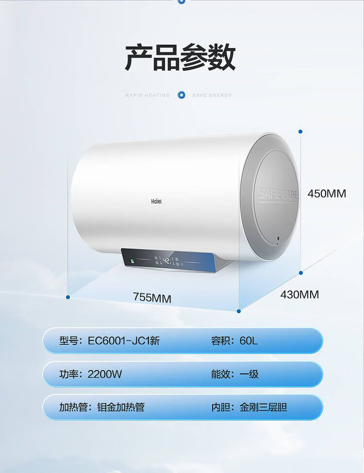 海尔60升 电热水器 一级能效 2200W健康灭菌 专利防电墙 EC6001-JC1 *