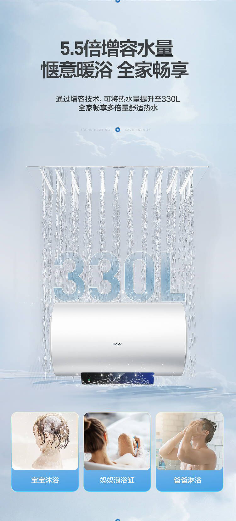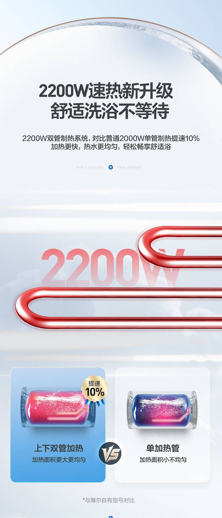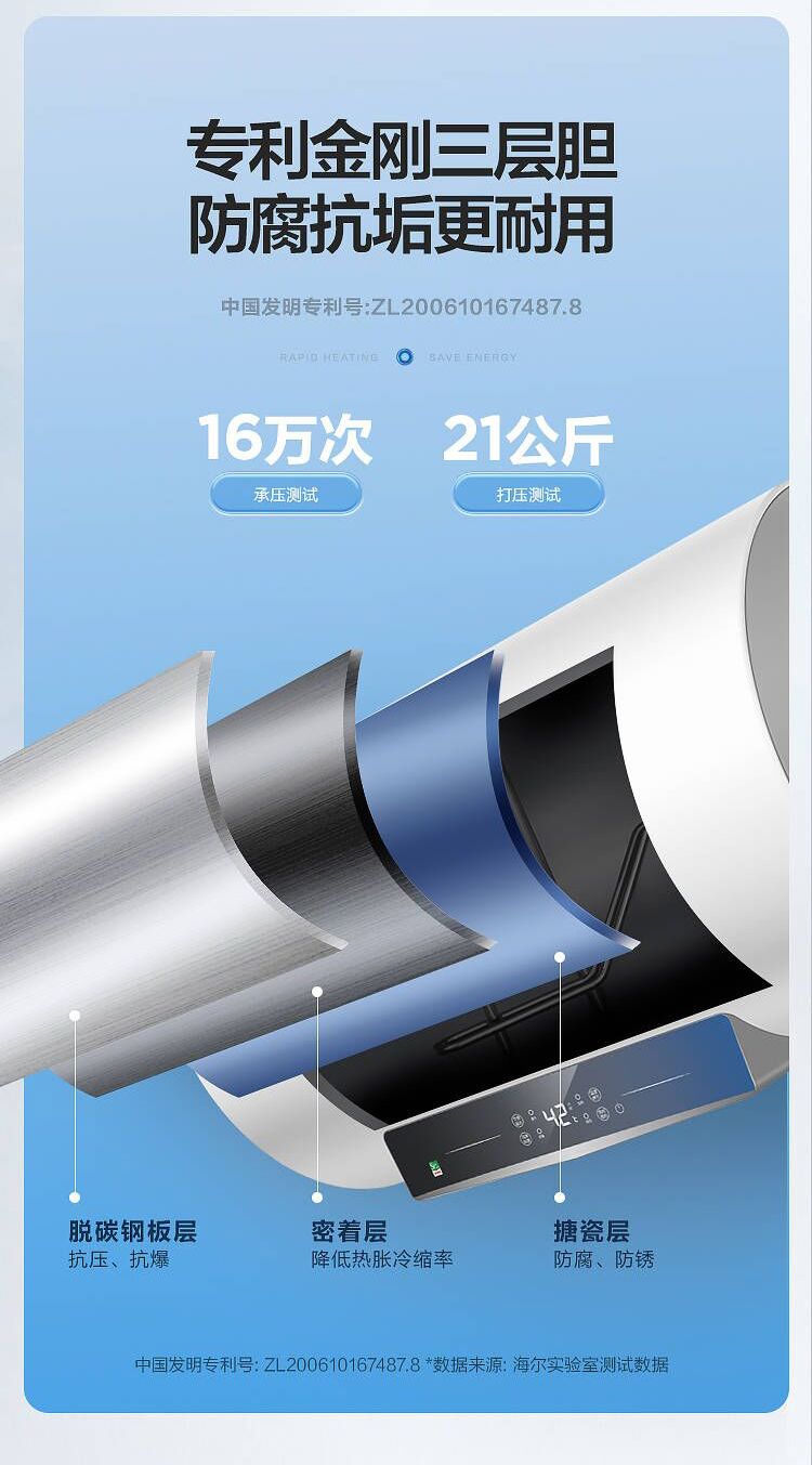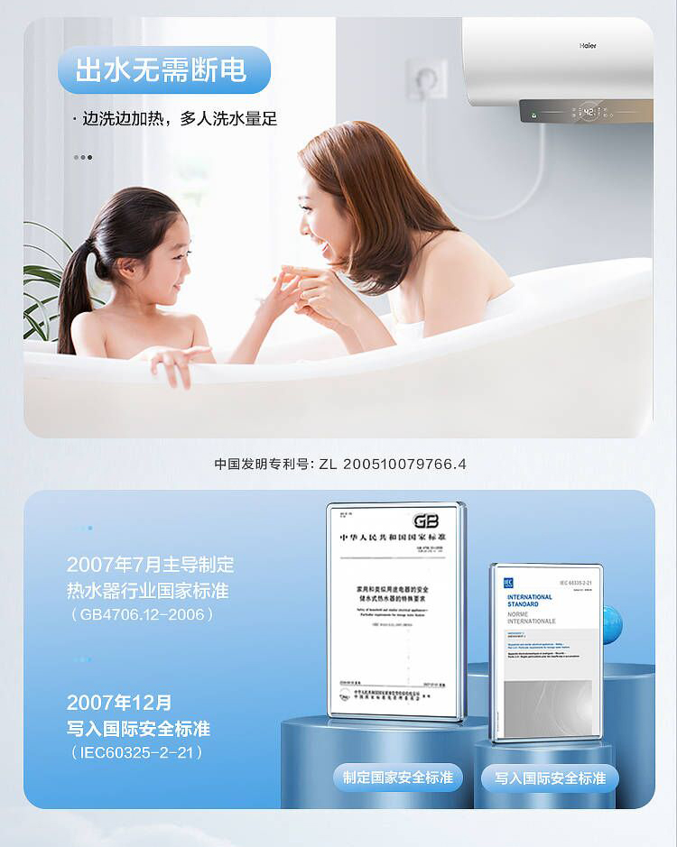 海尔60升 电热水器 一级能效 2200W健康灭菌 专利防电墙 EC6001-JC1 *