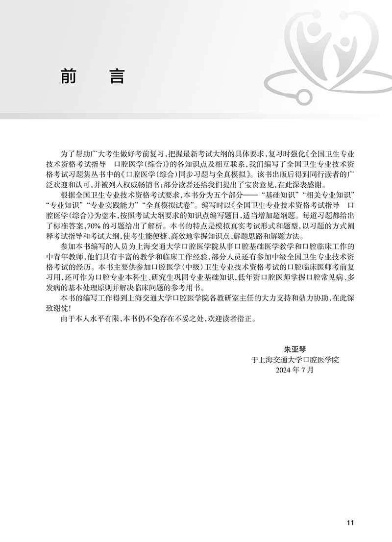 2025口腔医学(综合)同步习题与全真模拟 全国卫生专业技术资格考试习题集丛书 主编朱亚琴 适用专业口腔医学(中级)9787117369121人民卫生出版社