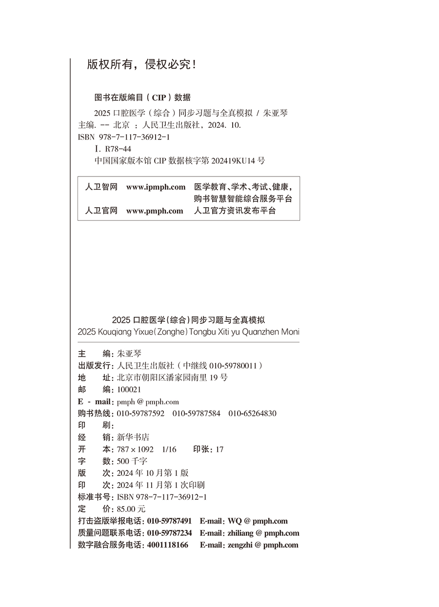 书名:2025口腔医学(综合)同步习题与全真模拟