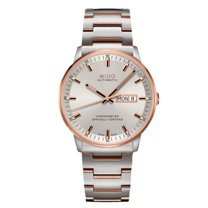 镜面 材质 | 蓝宝石水晶玻璃 | 表盘 | 精钢/18K玫瑰金表壳 银色表盘 大三针 日期 星期显示 透底 |