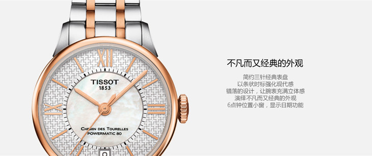 | 防水 | 50 m | 表带 | 精钢PVD镀玫瑰金表链 按钮式蝴蝶扣 |