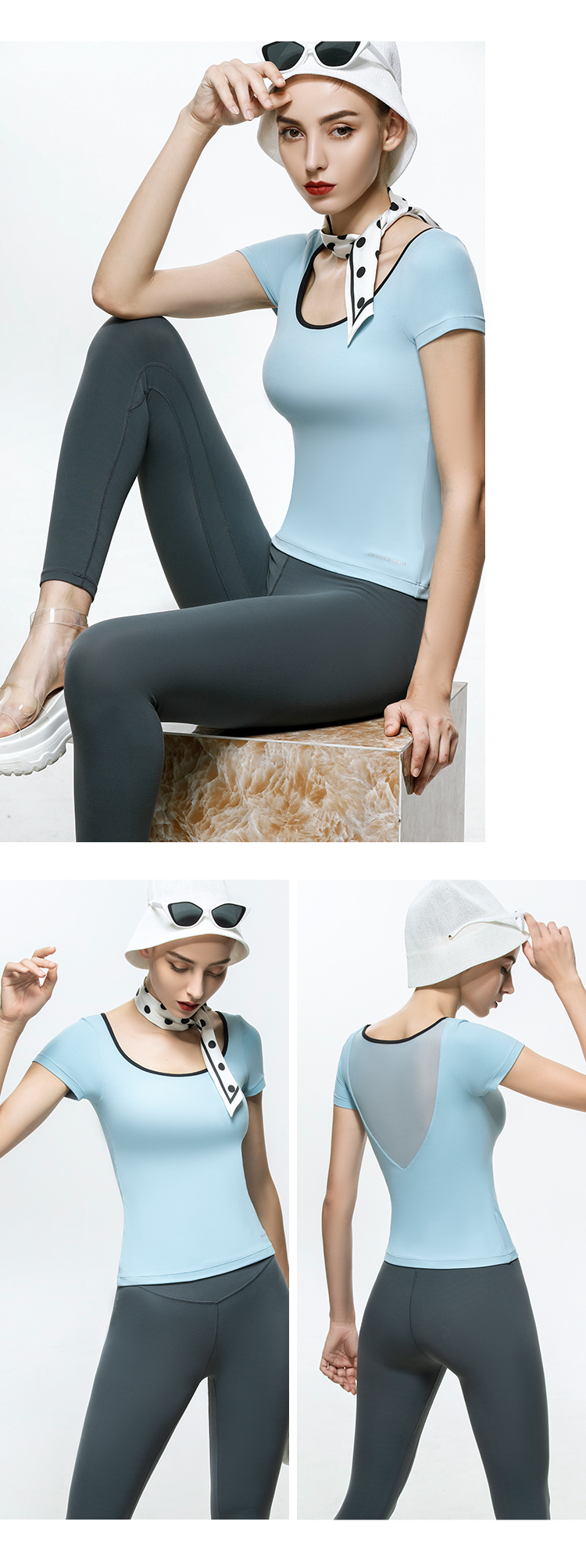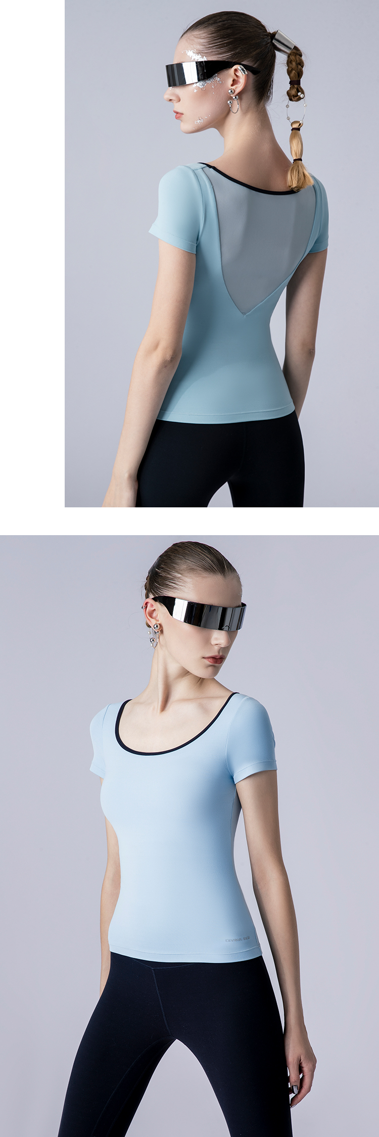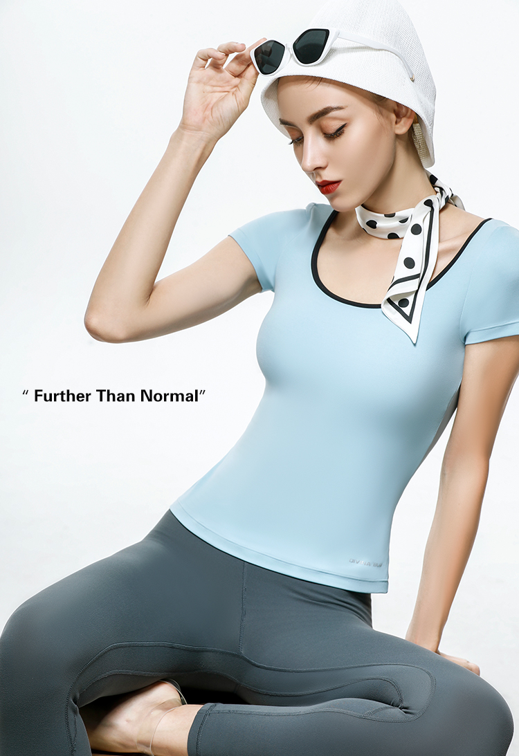DIVINABLU巴黎系列裸感短袖长款瑜伽T恤细纱透背运动上衣带胸垫巴黎裸感短袖04