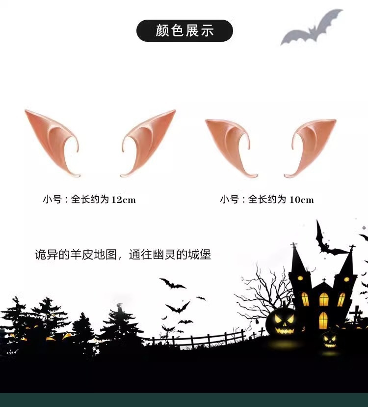 超值三对【万圣狂欢夜!一起来捣蛋】万圣节精灵耳朵道具酒吧成人幼儿园小玩具假耳朵吸血鬼恐怖搞怪装饰品耳饰。rc