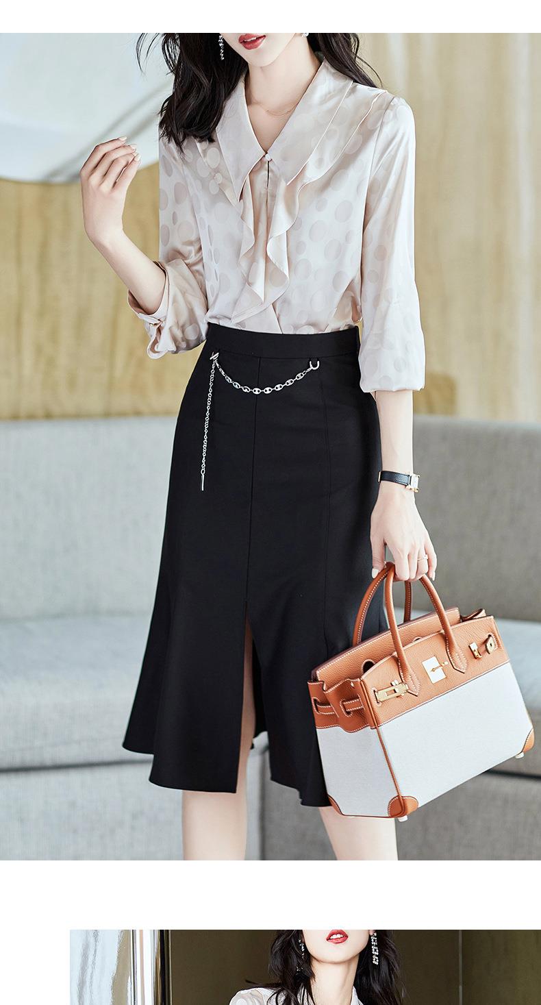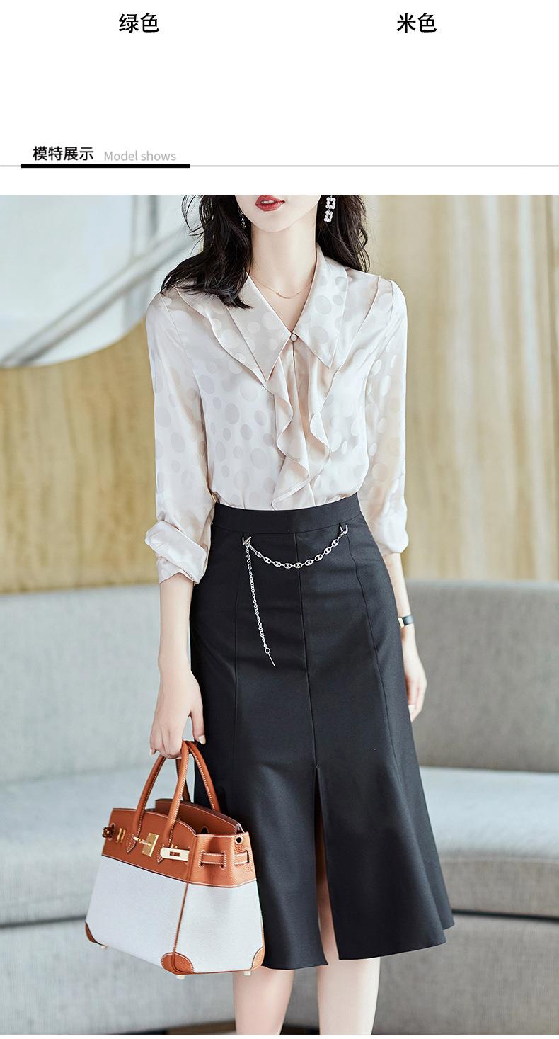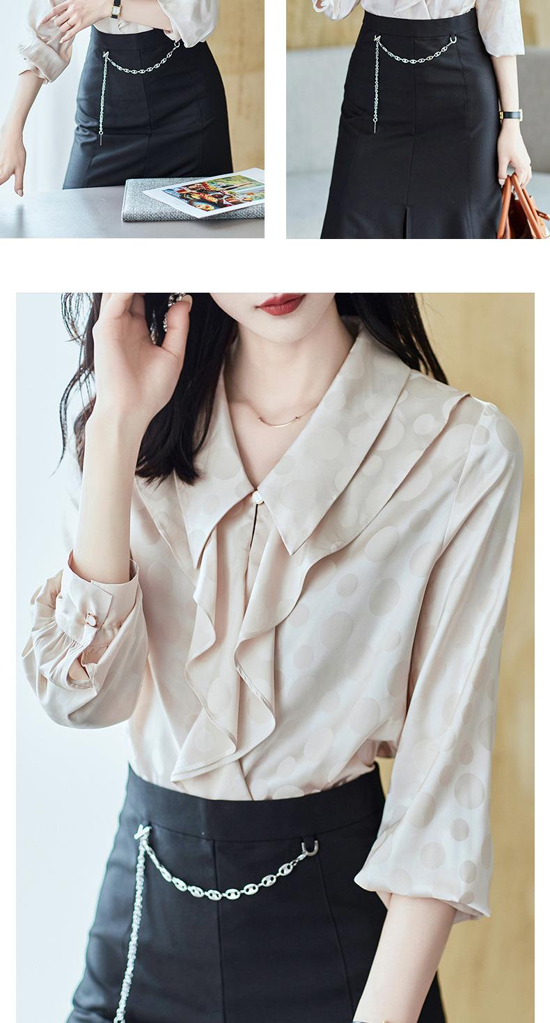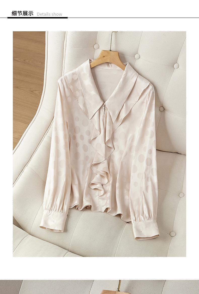 2023秋装新款衬衫女长袖宽松雪纺衫荷叶边女士衬衣A2552