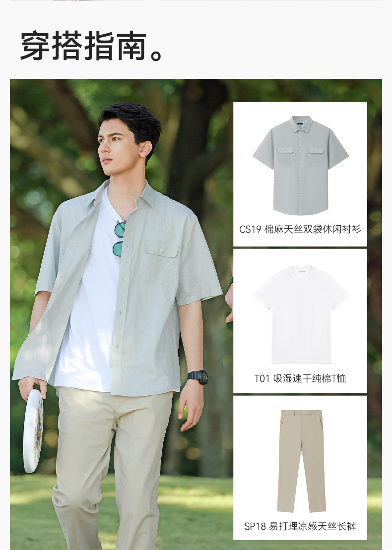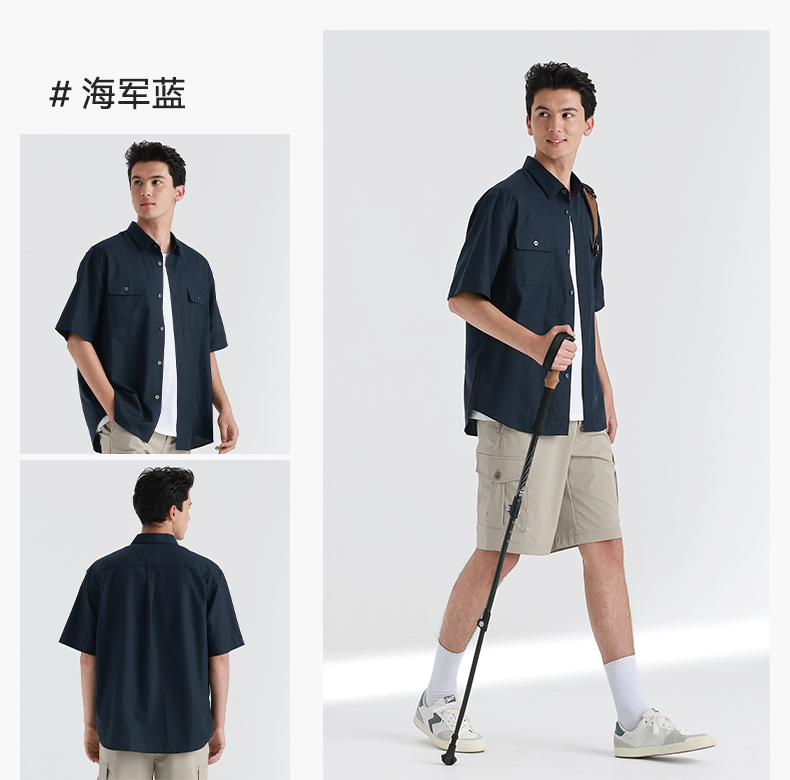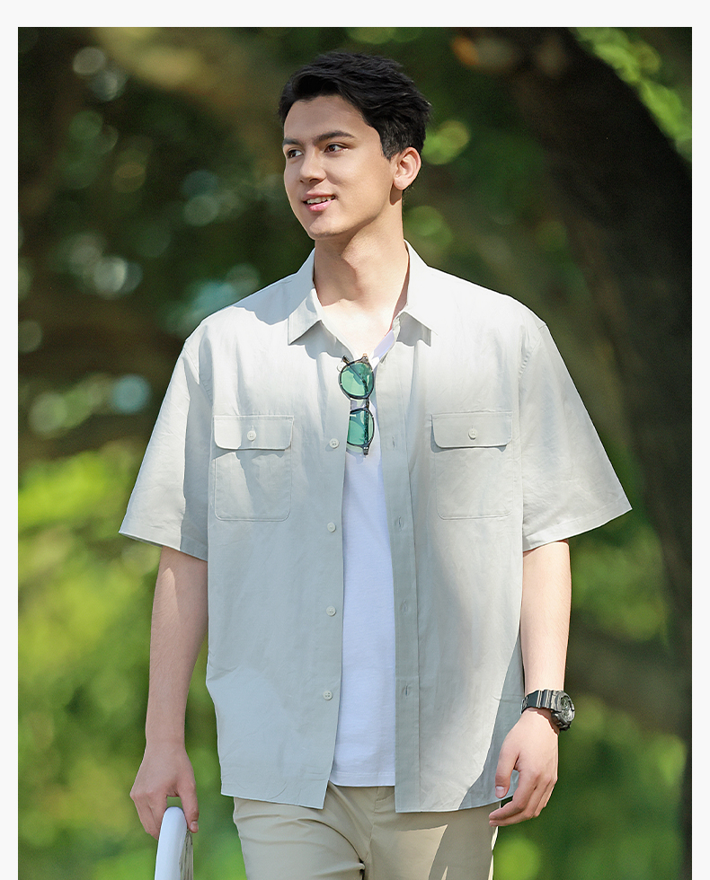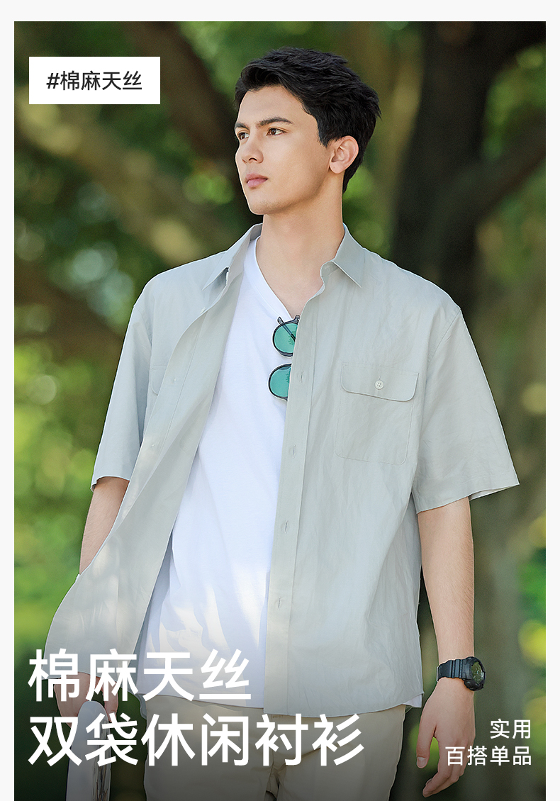 十如仕棉麻天丝双袋休闲短袖衬衫舒适短袖简约衬衫百搭户外-CS19