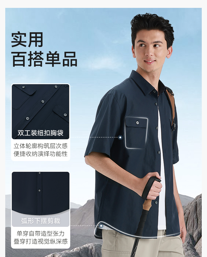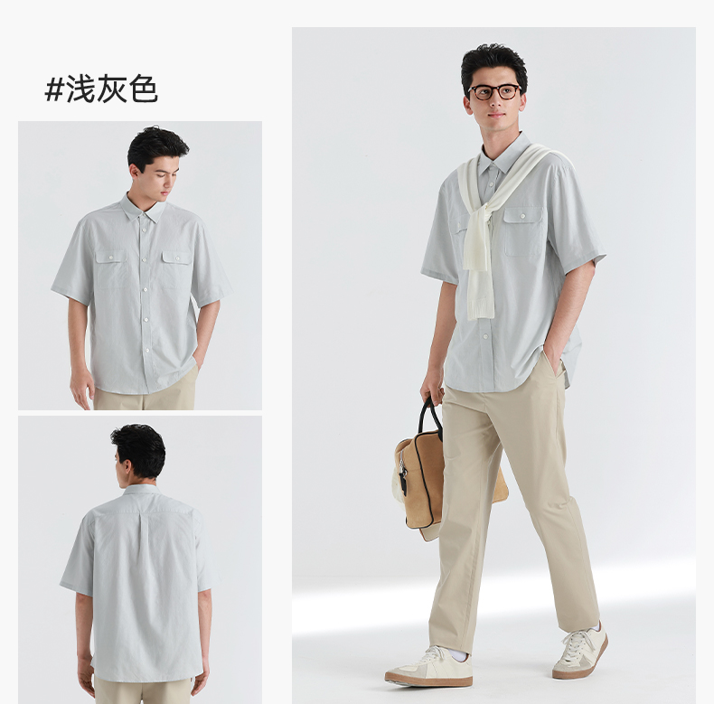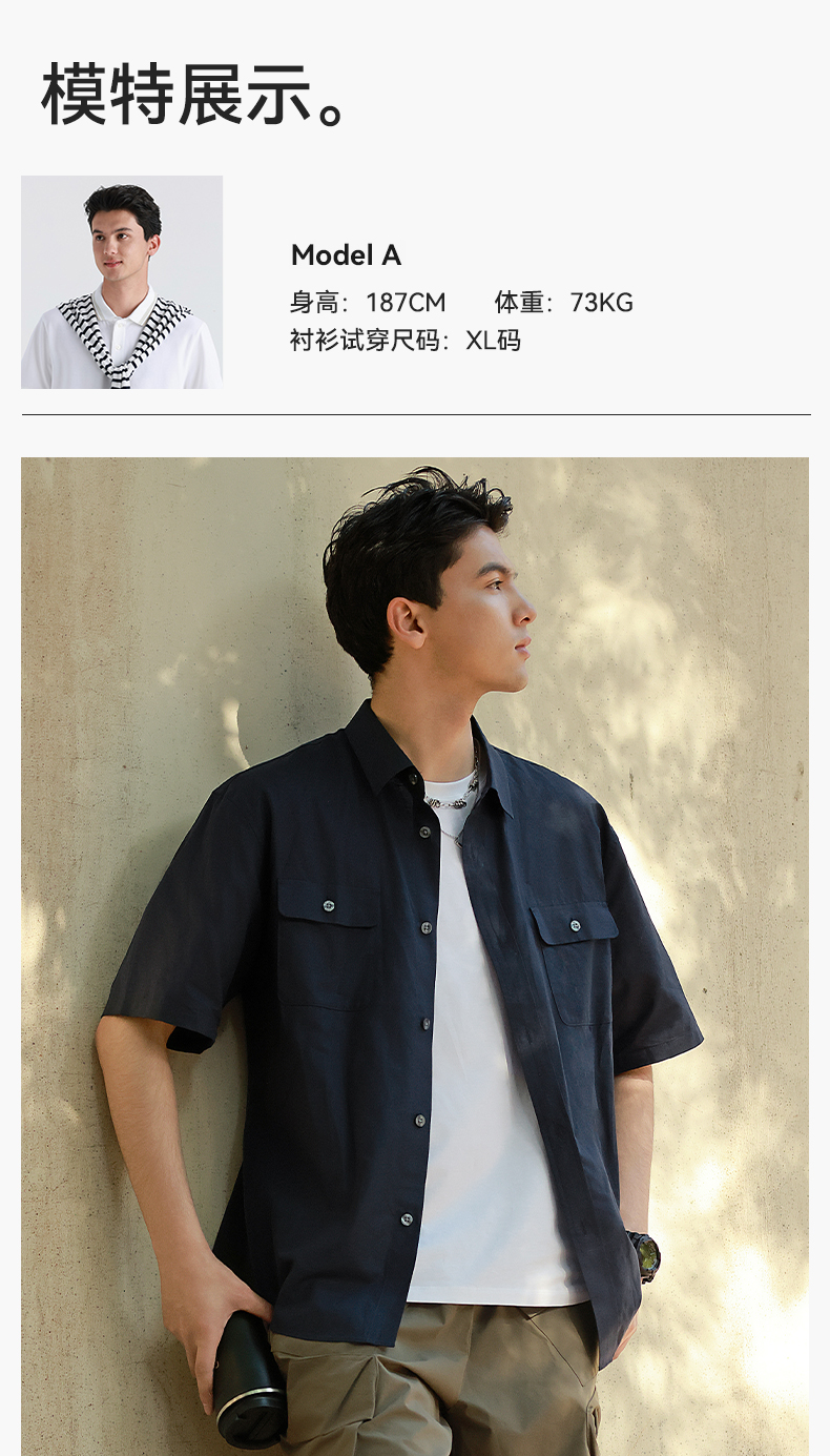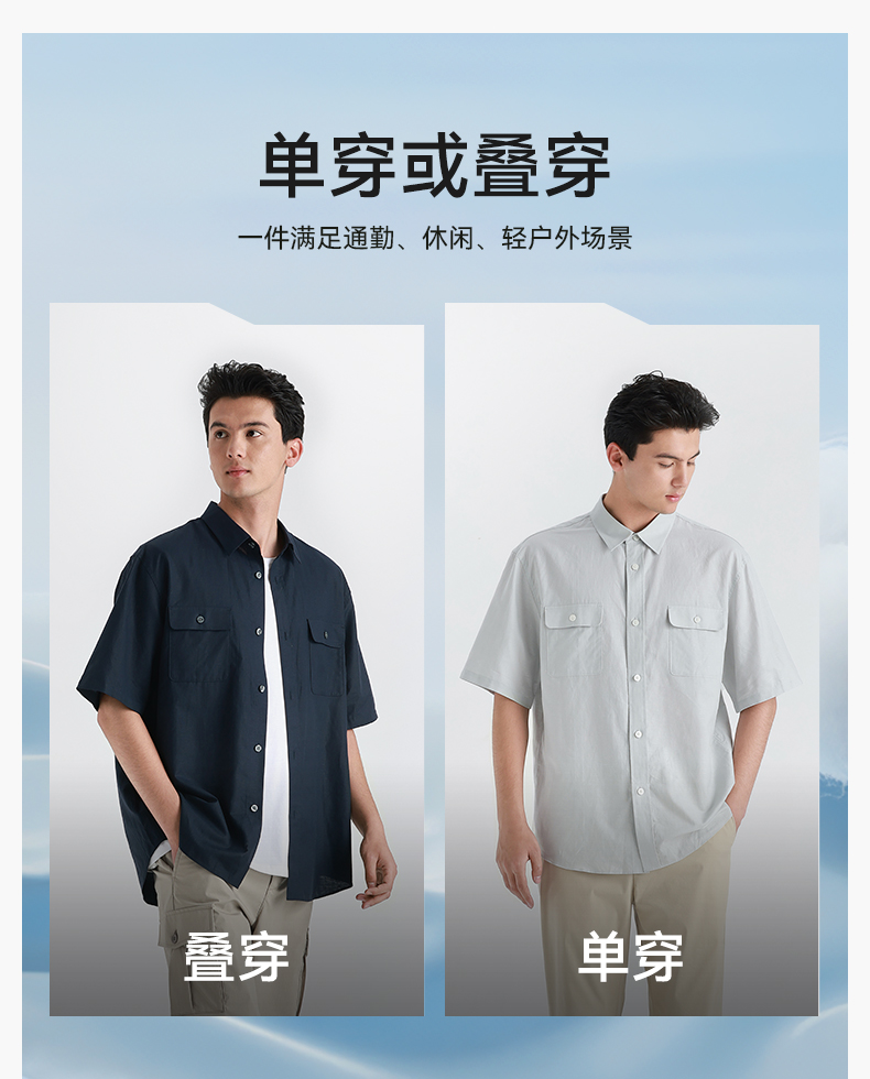 十如仕棉麻天丝双袋休闲短袖衬衫舒适短袖简约衬衫百搭户外-CS19