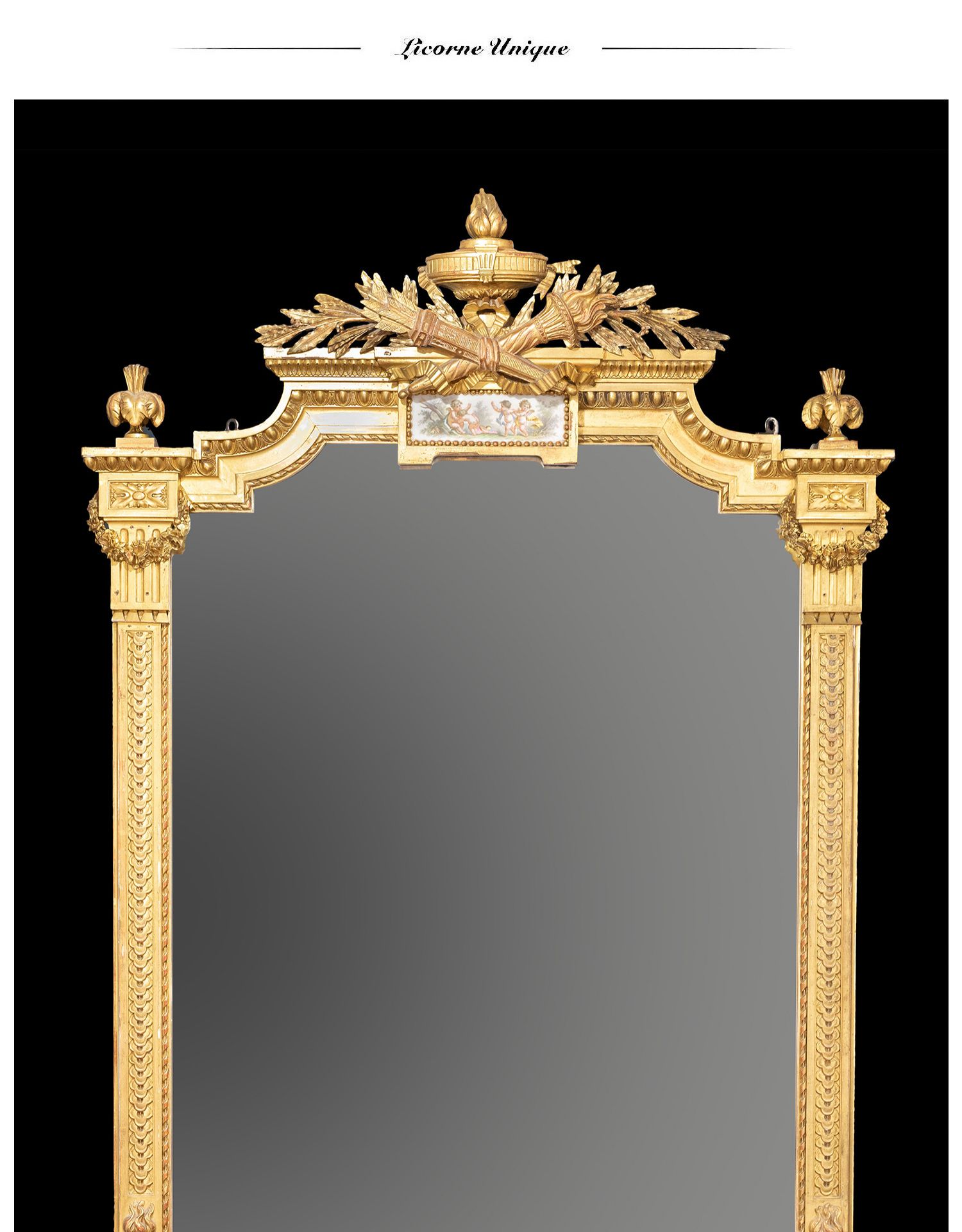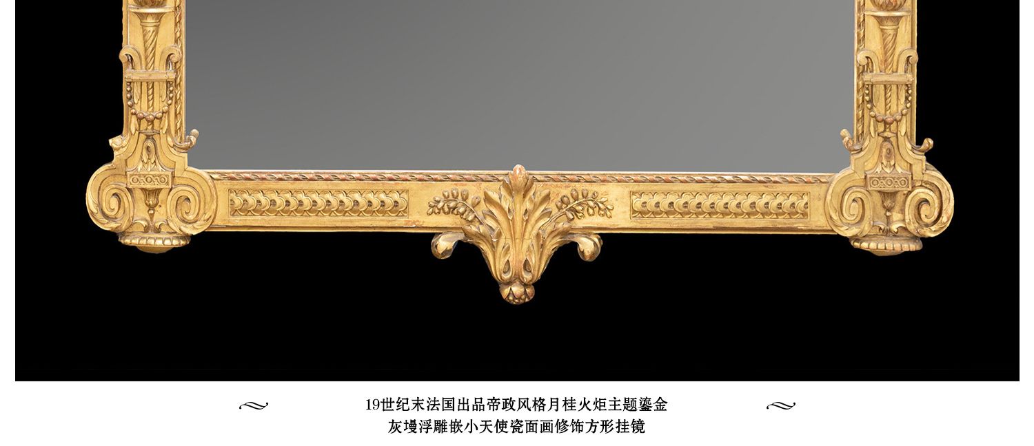 独角鹿西洋古董帝政风月桂火炬鎏金灰墁浮雕小天使瓷面画方形挂镜
