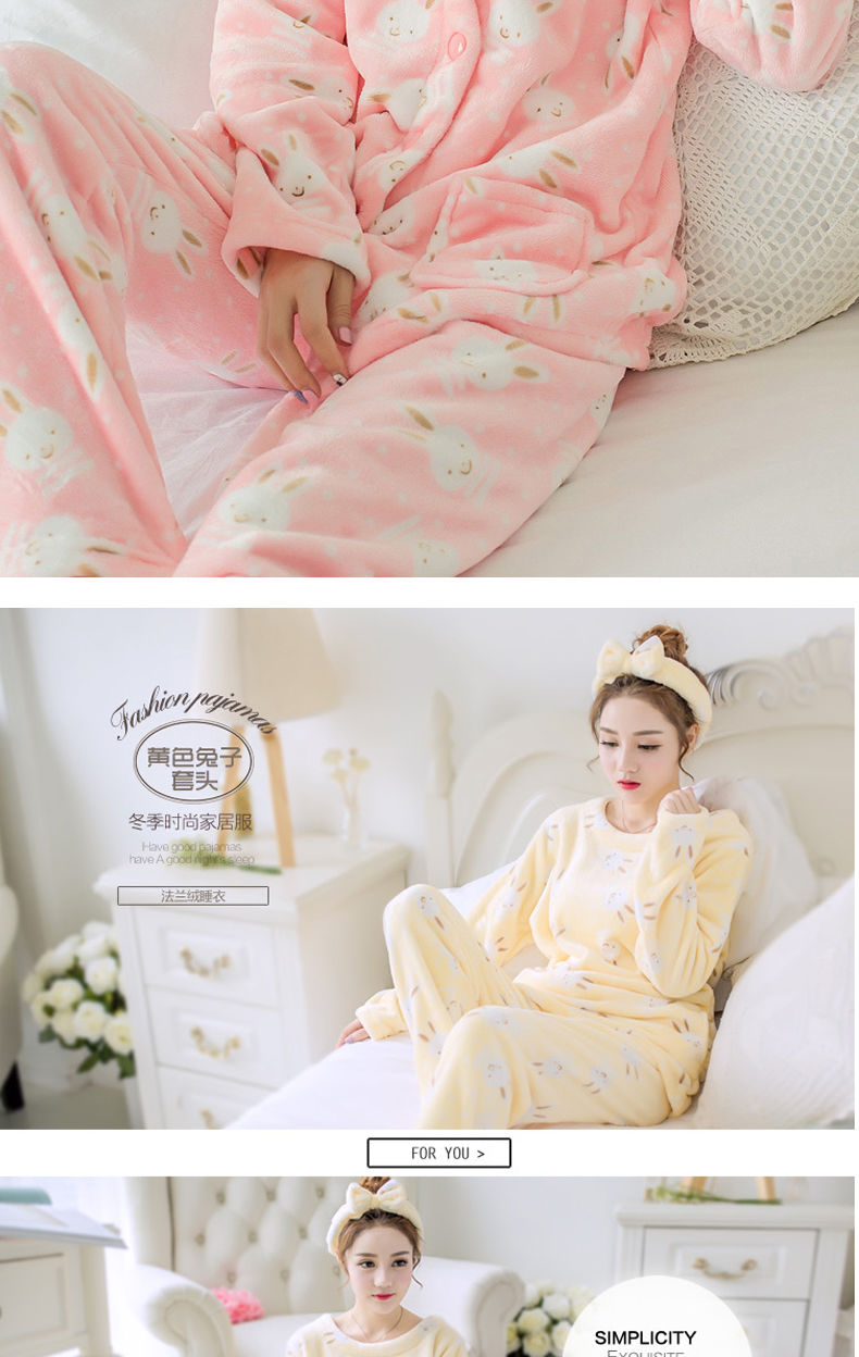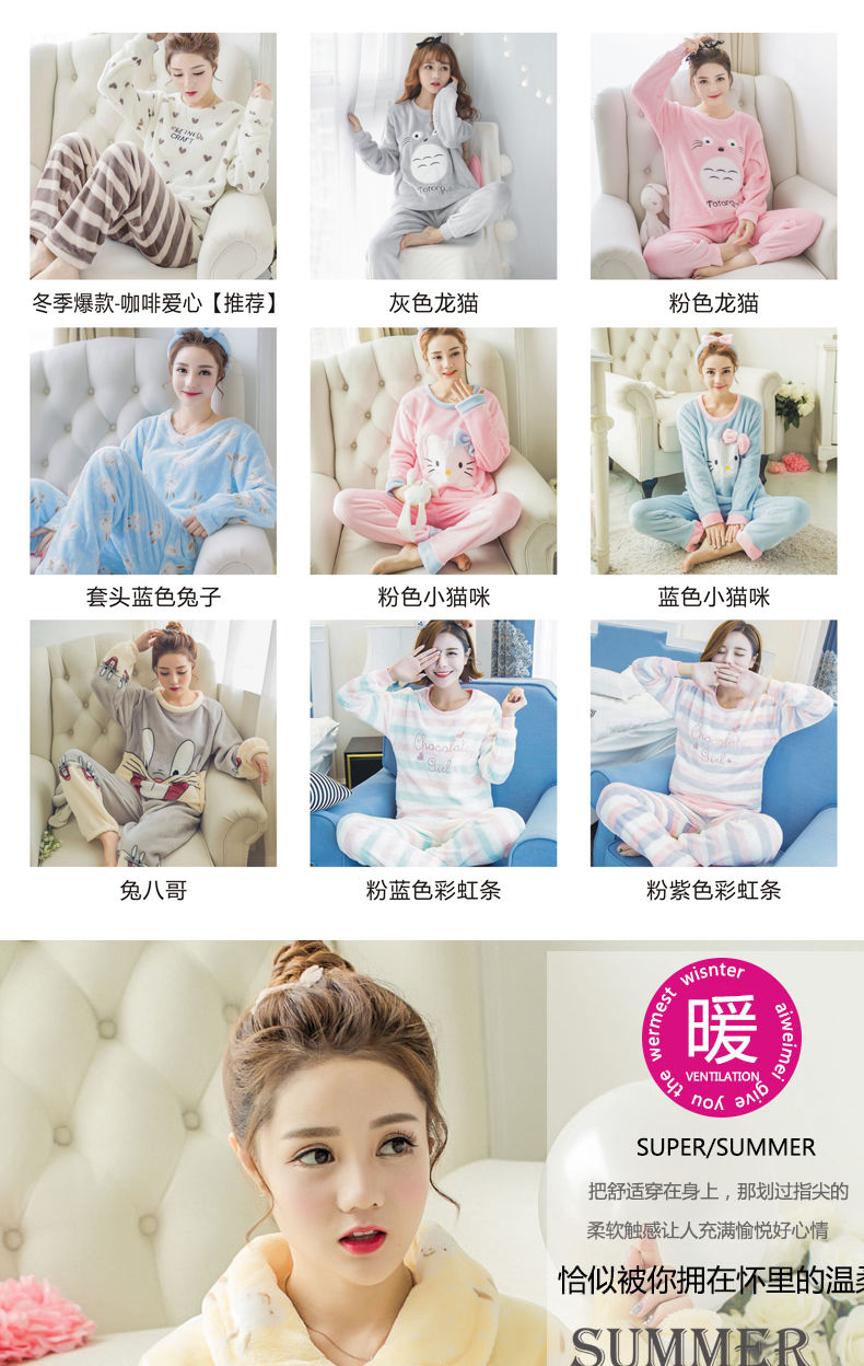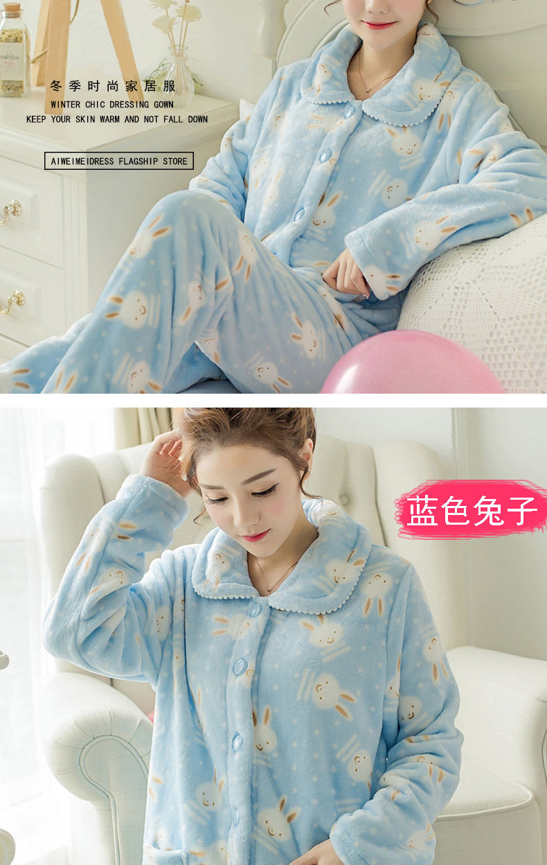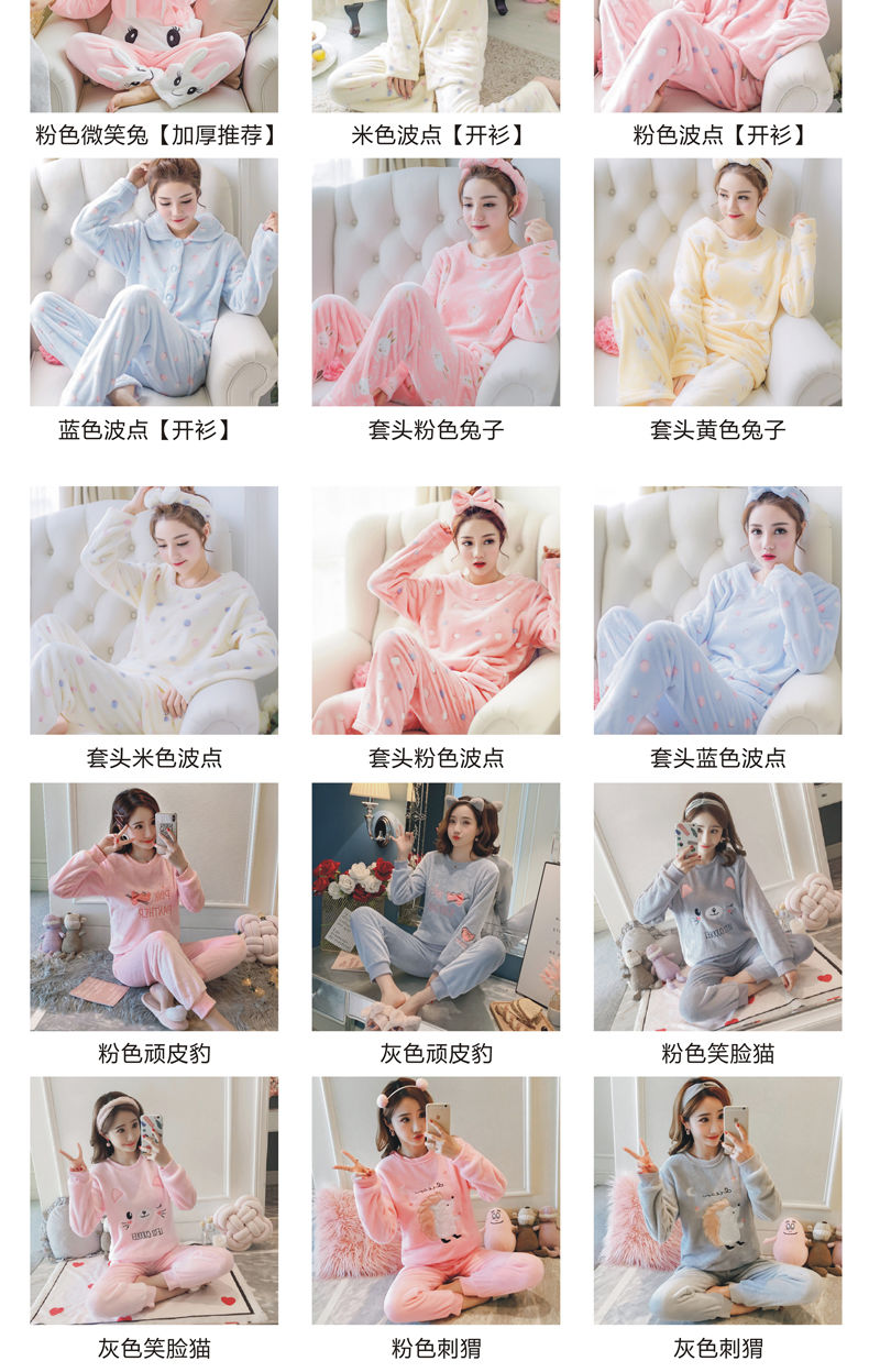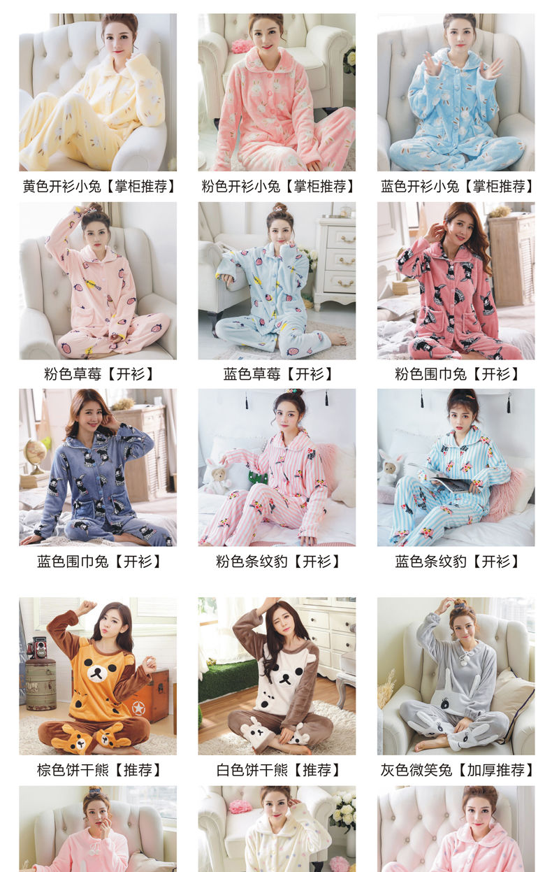 【颜艳妍】女加厚加大码韩版秋冬法兰珊瑚绒睡衣可爱家居服保暖衣