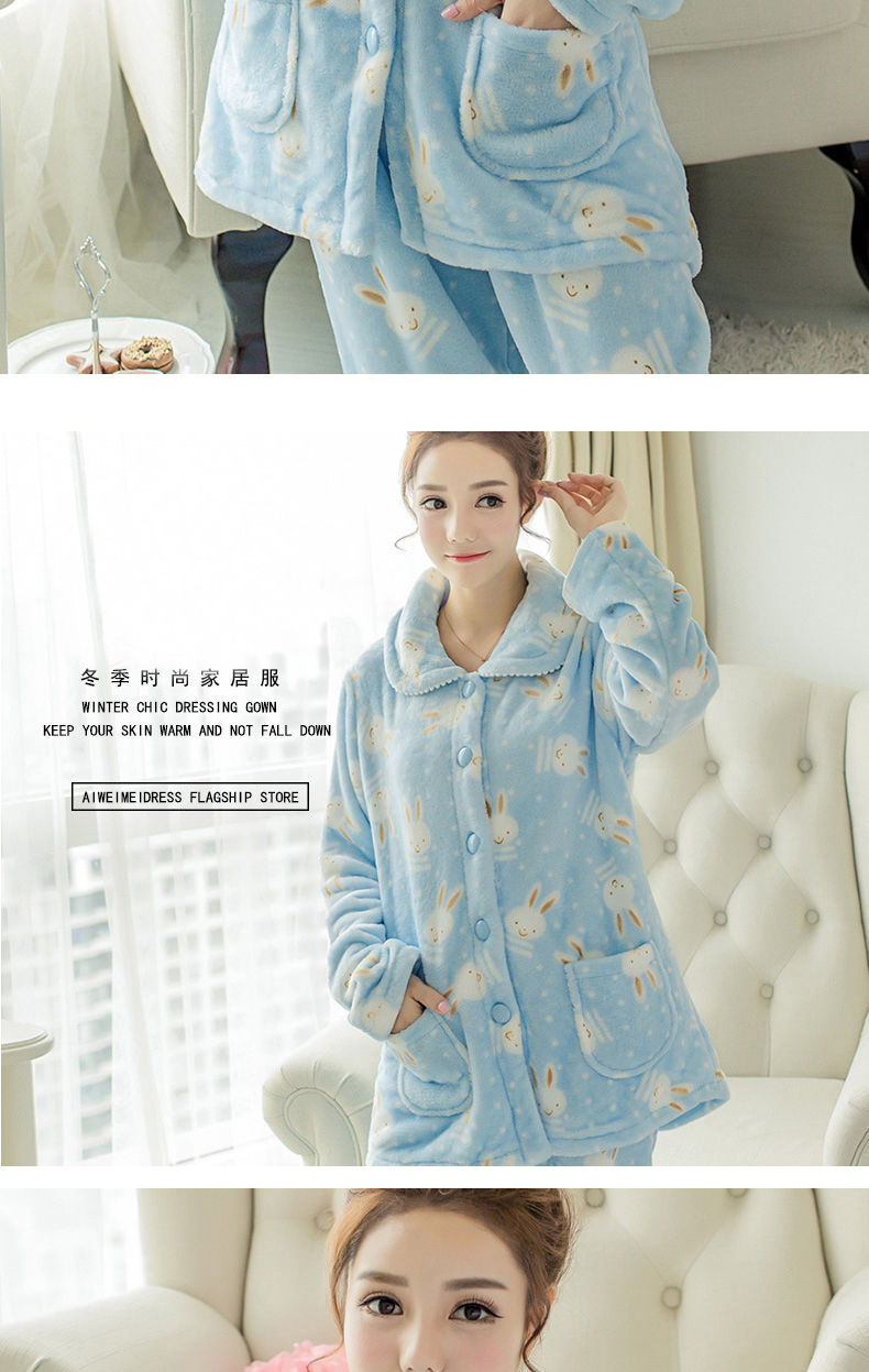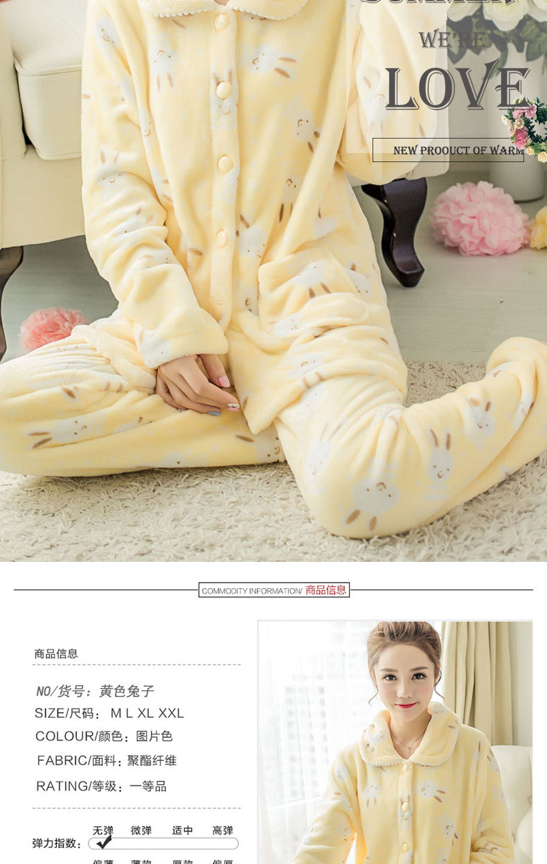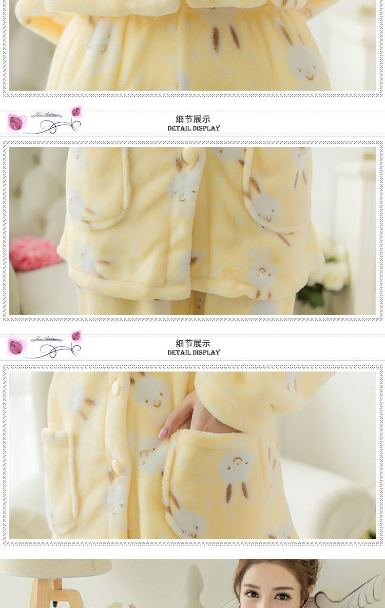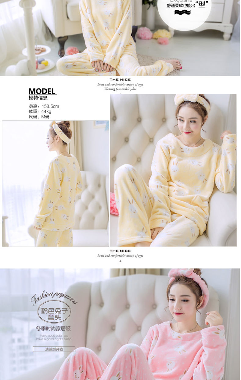 【颜艳妍】女加厚加大码韩版秋冬法兰珊瑚绒睡衣可爱家居服保暖衣