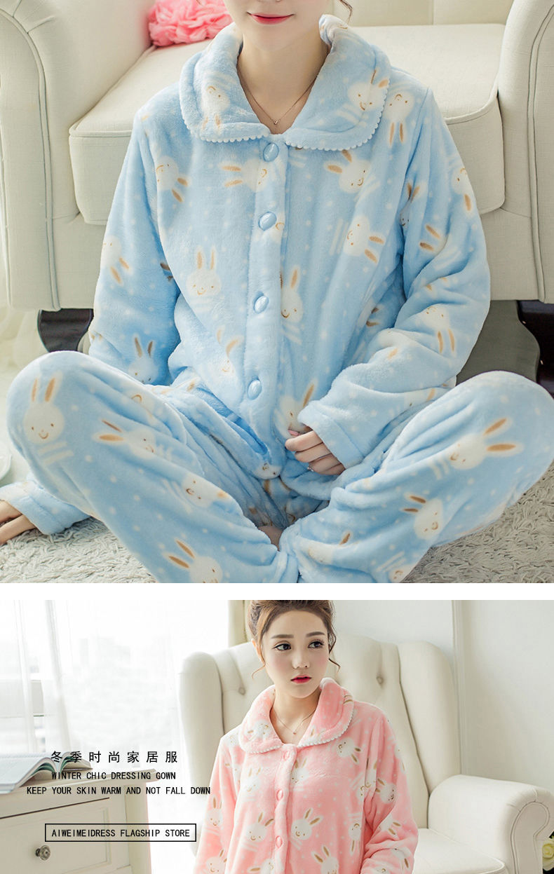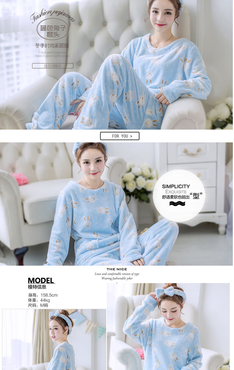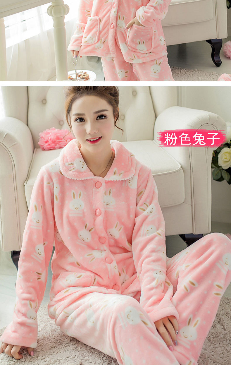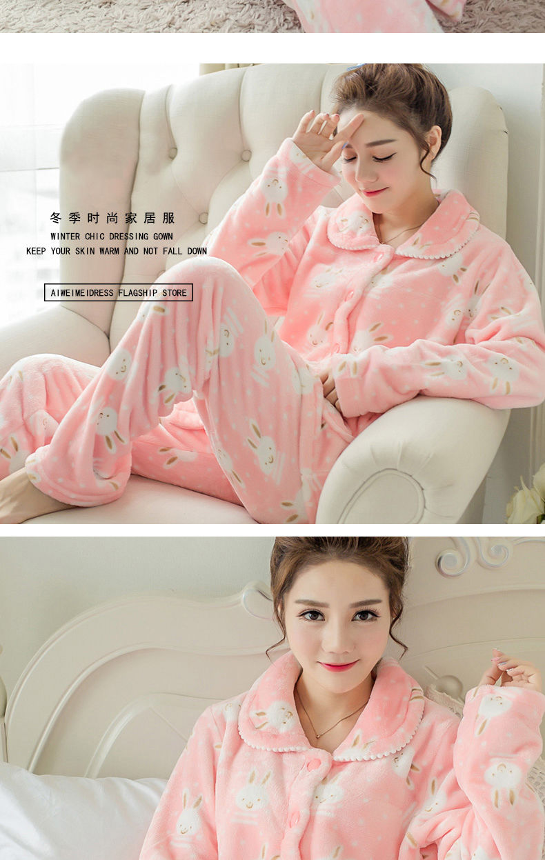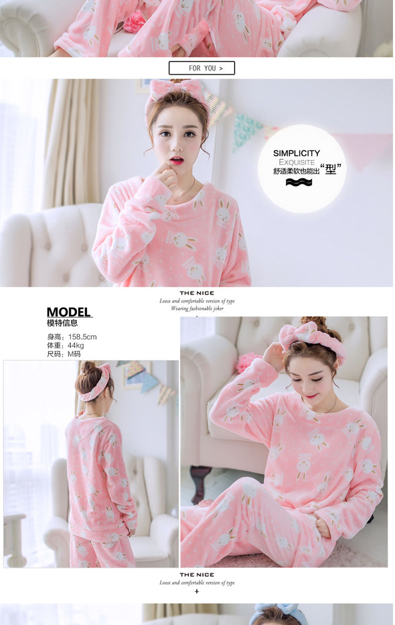 【颜艳妍】女加厚加大码韩版秋冬法兰珊瑚绒睡衣可爱家居服保暖衣
