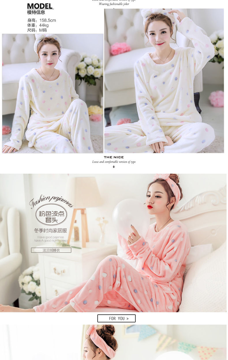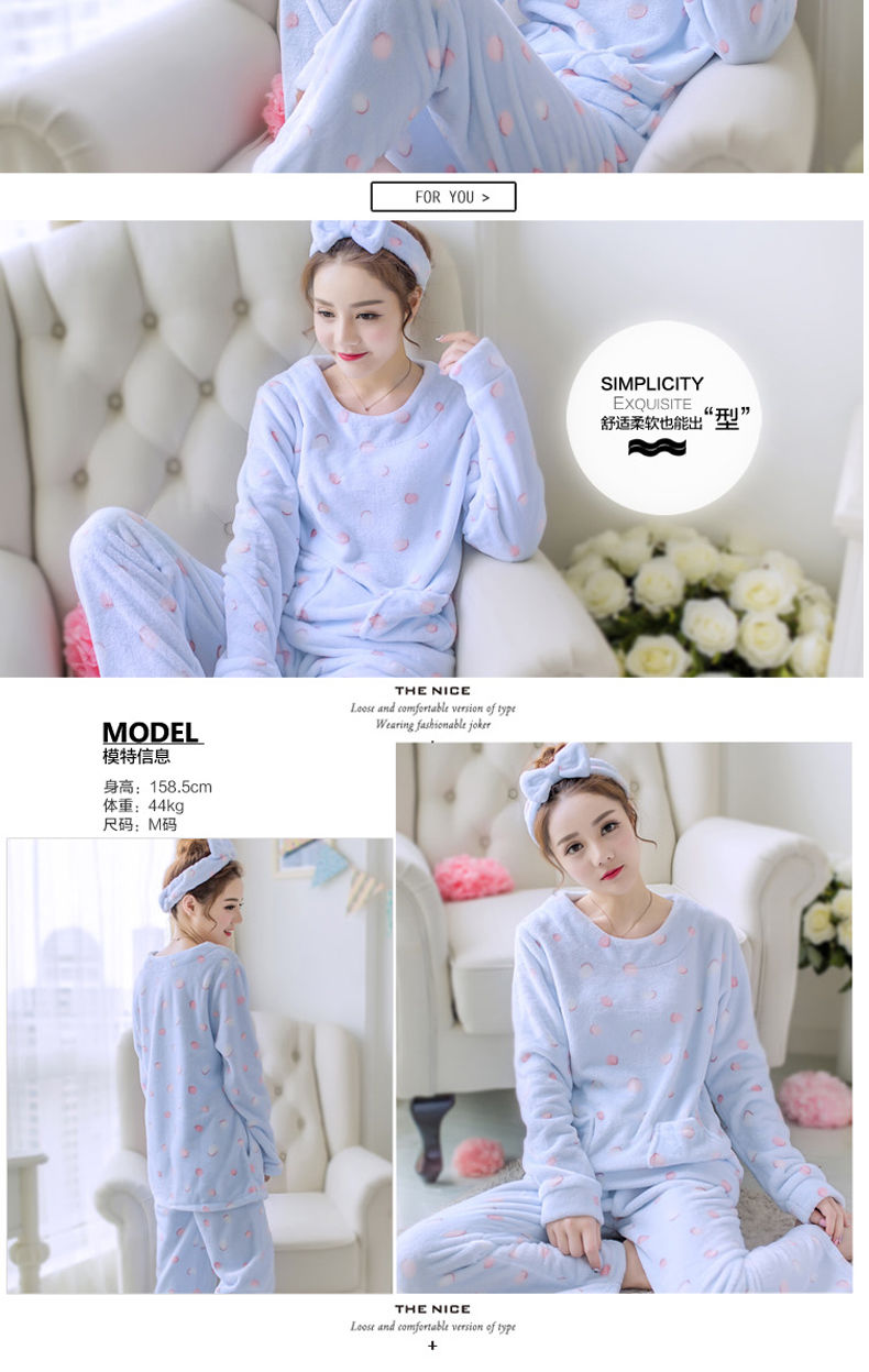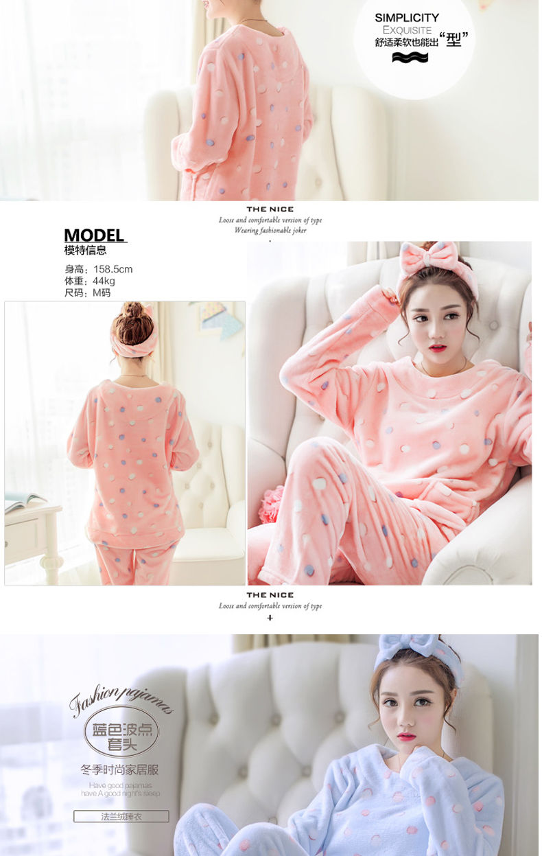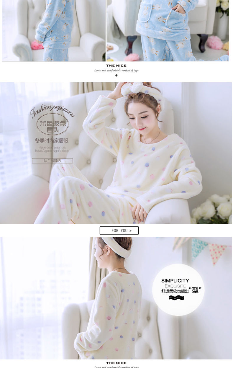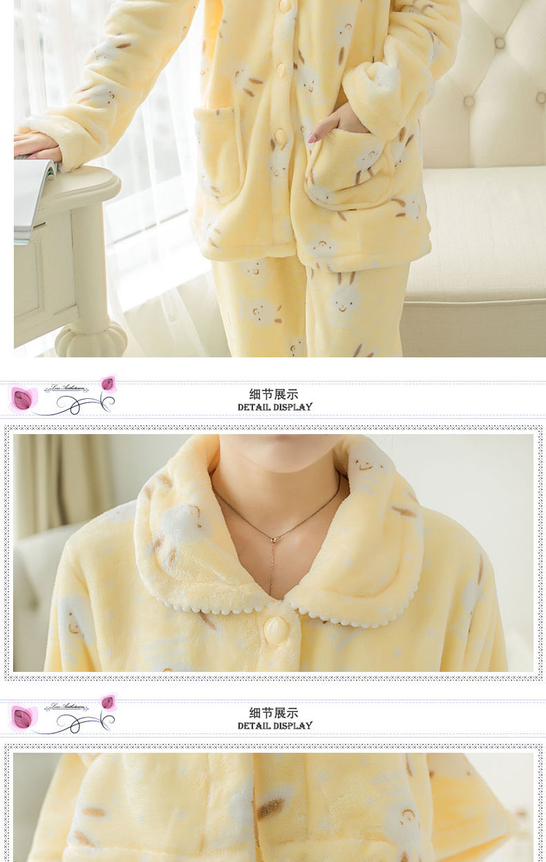 【颜艳妍】女加厚加大码韩版秋冬法兰珊瑚绒睡衣可爱家居服保暖衣
