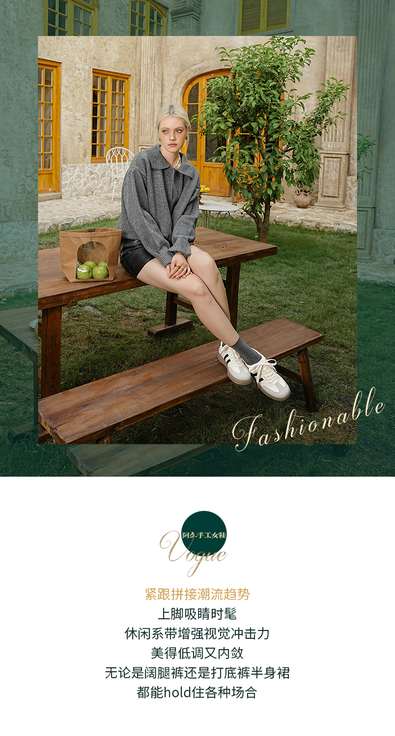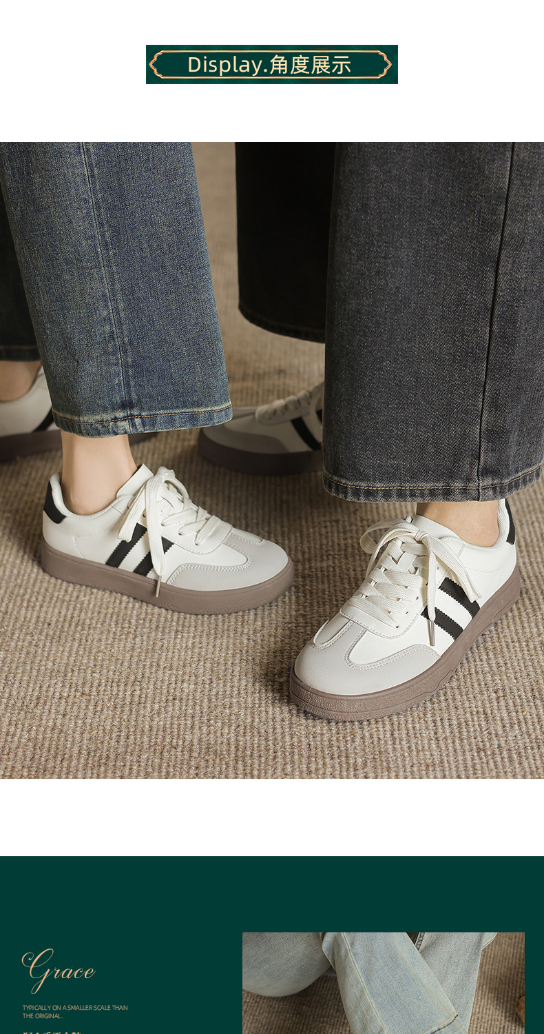 阿么手工女鞋2025新款厚底系带小白鞋百搭男女同款休闲板鞋3.5CM