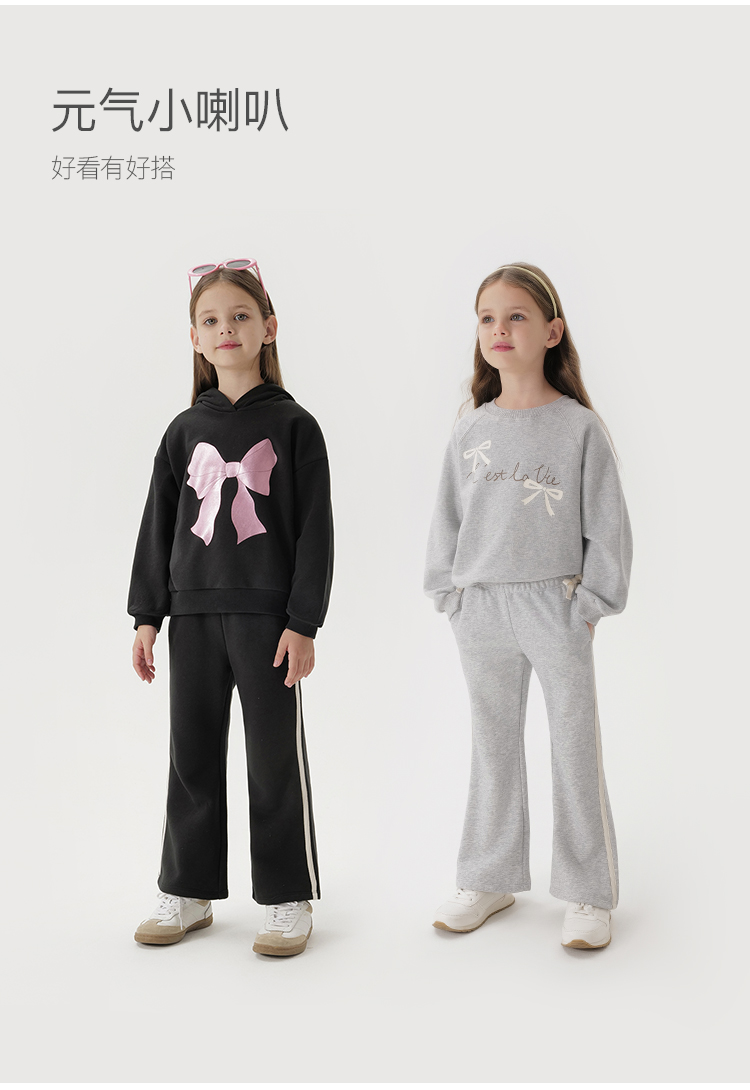 马克珍妮女童蝴蝶结撞色喇叭裤 儿童裤子2025年春装新款250266