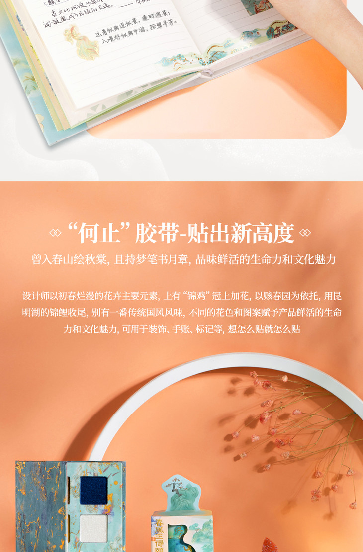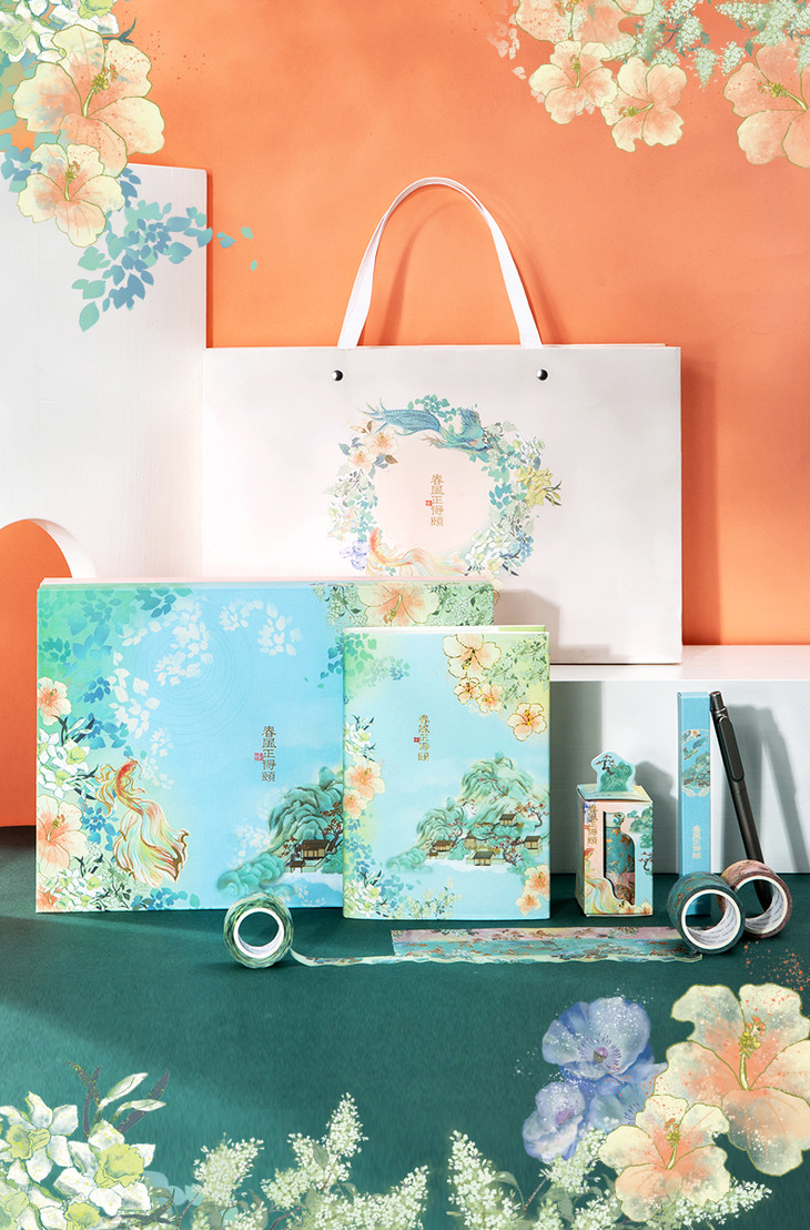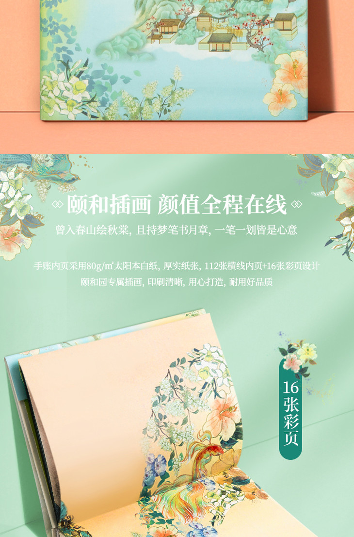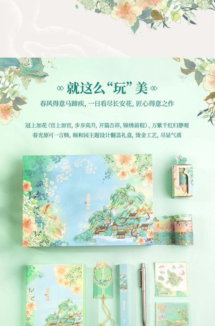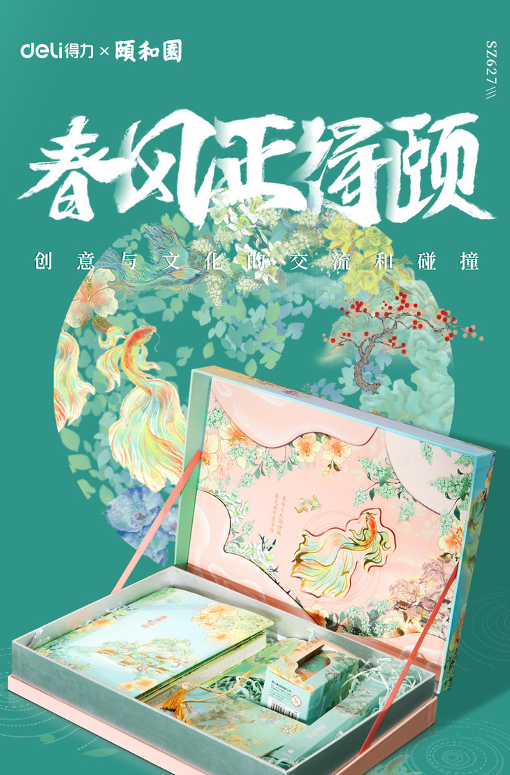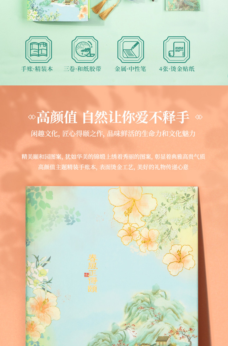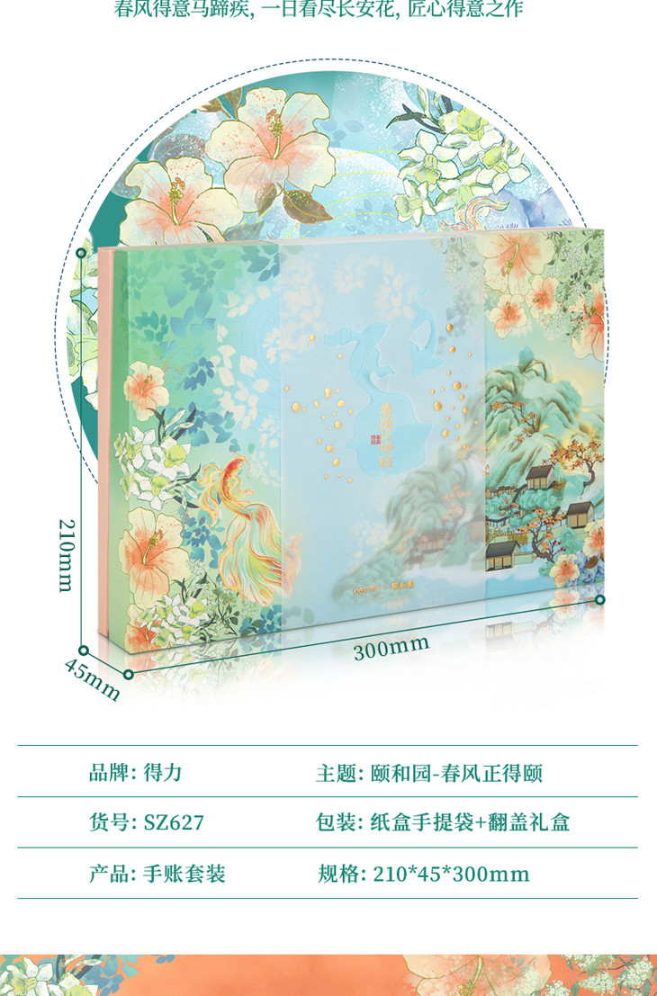 【手账精装本+和纸胶带+金属中性笔+烫金贴纸】得力颐和园系列春风正得颐手账礼盒年货节手账礼盒文具套装古风印花手账用品笔记本套装初高中生节日礼物送礼盒