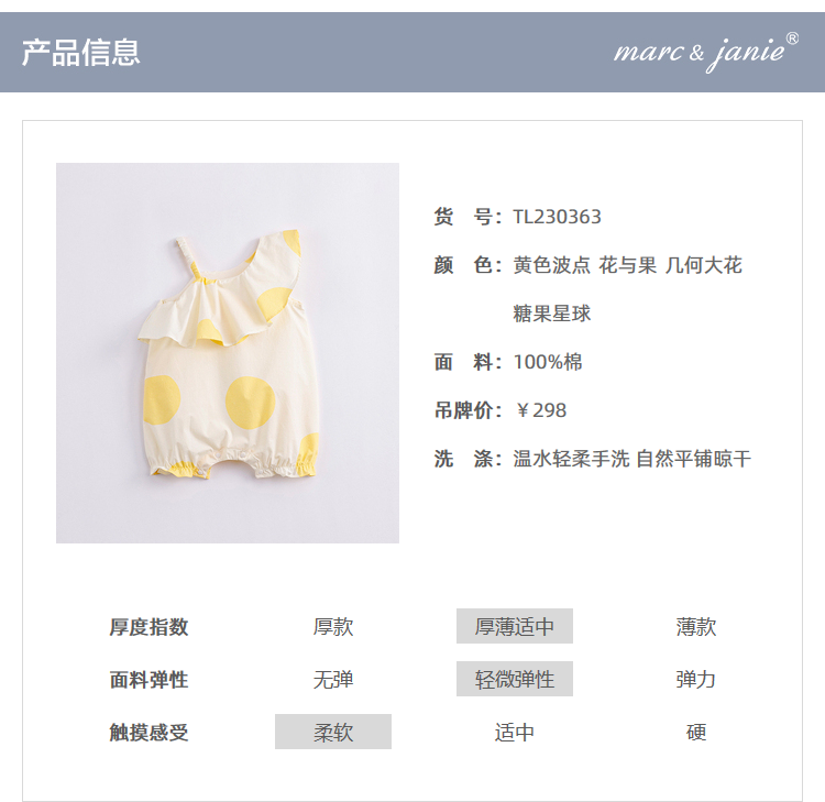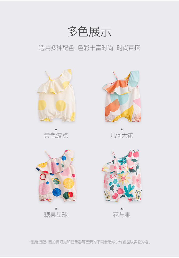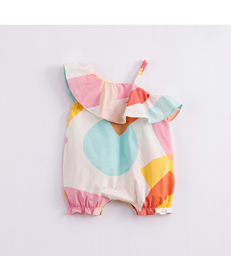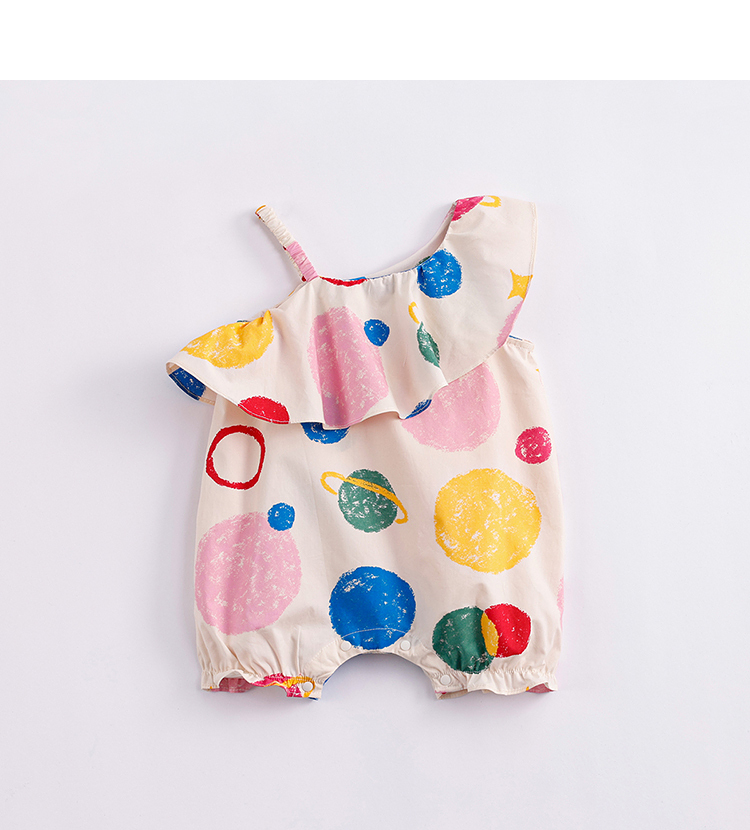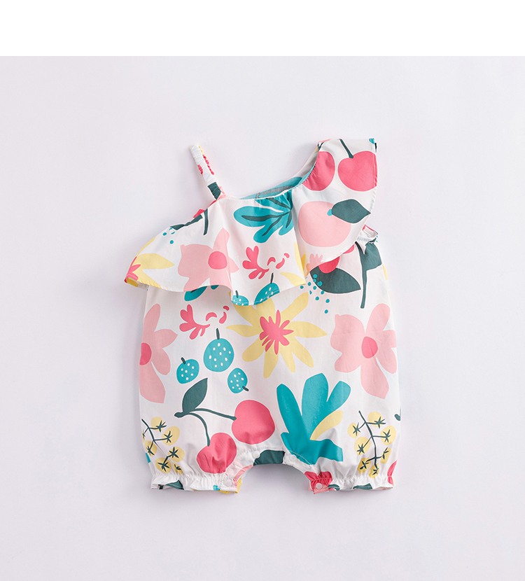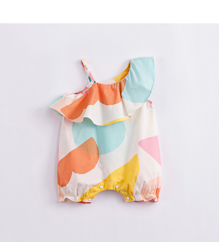马克珍妮夏装新款 女童北欧风纯棉花边吊带连体衣230363