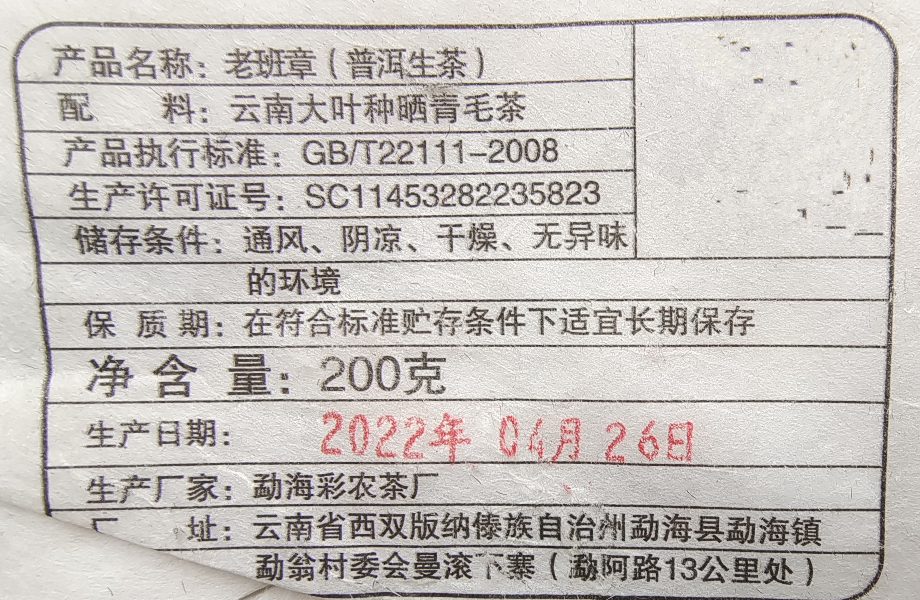 彩农茶|老班章2022头春古树纯料青饼