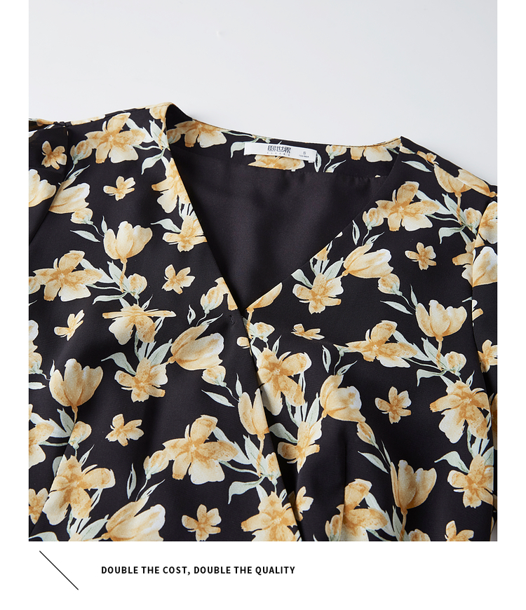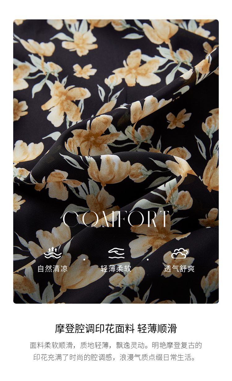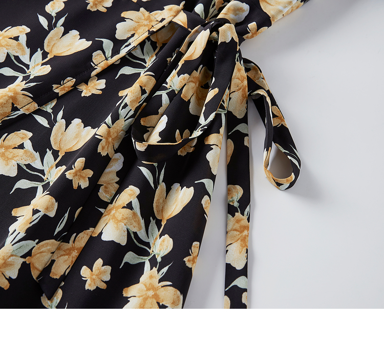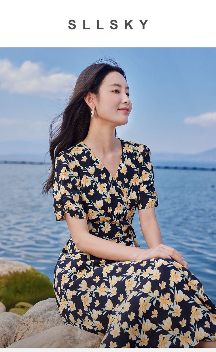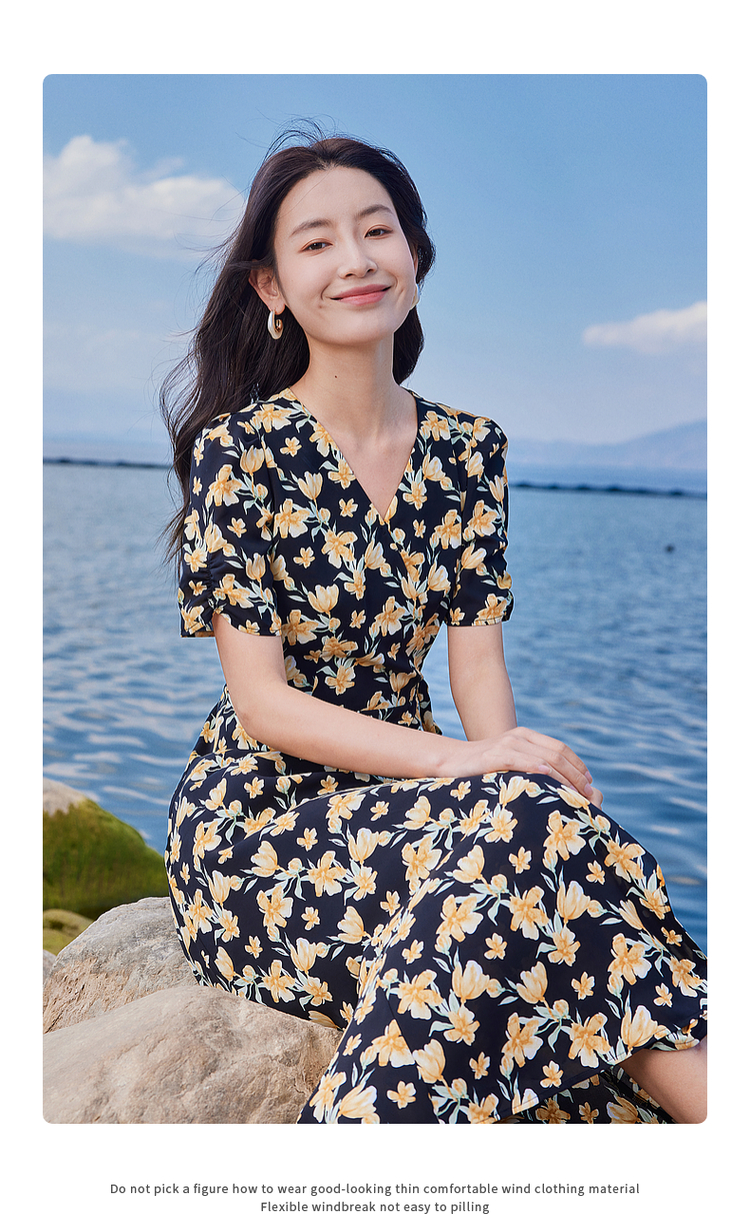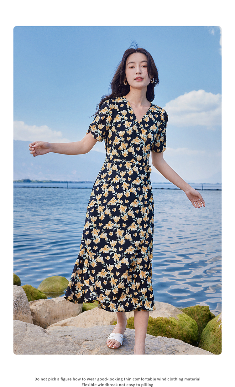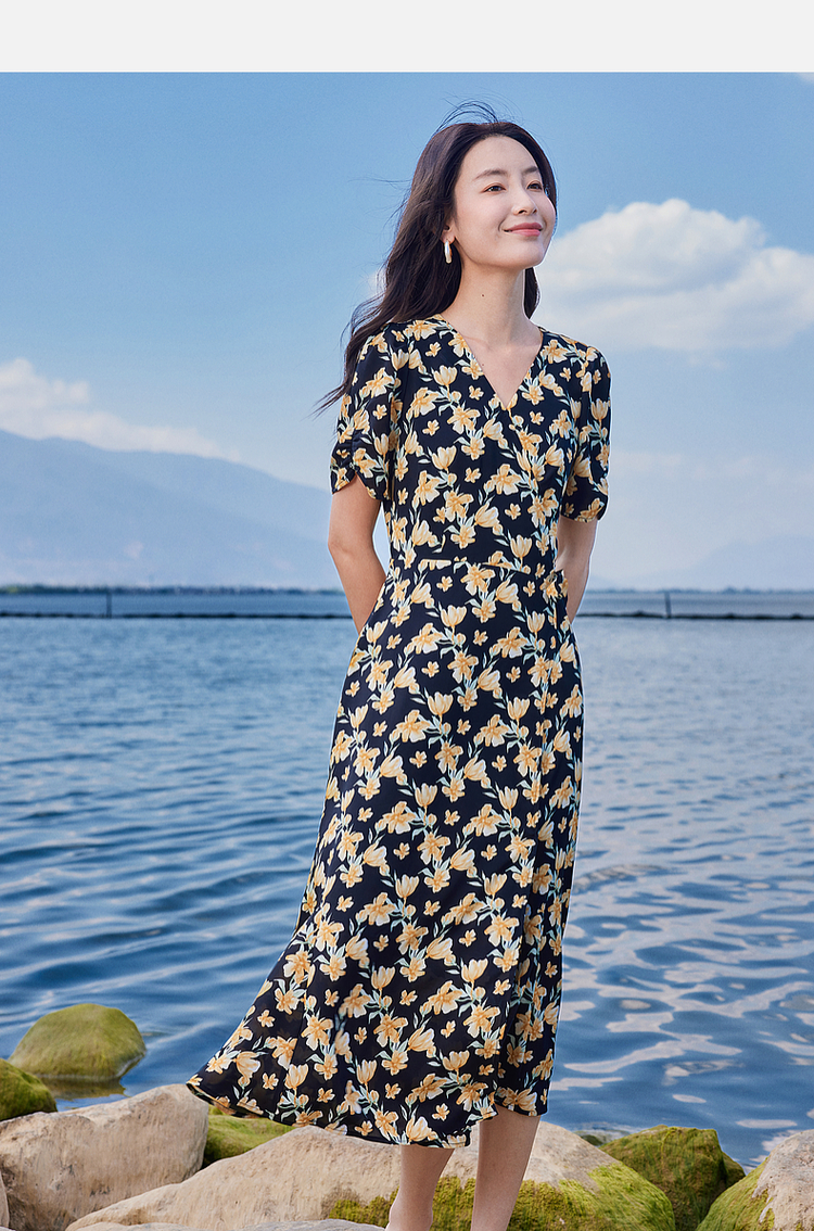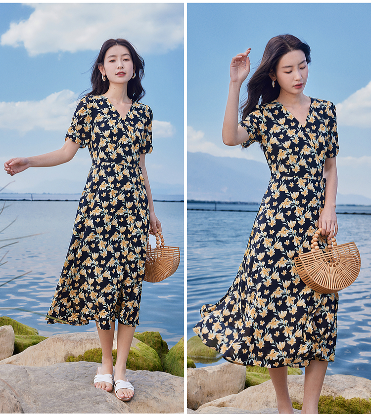 【五折购】熙世界浪漫复古围裹式V领碎花连衣裙2025夏季新款气质茶歇裙子