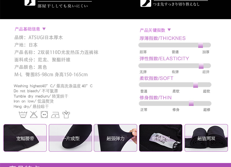 日本ATSUGI厚木 110D天鹅绒发热连裤袜丝袜M-L 2双装JPY带授权招加盟代理