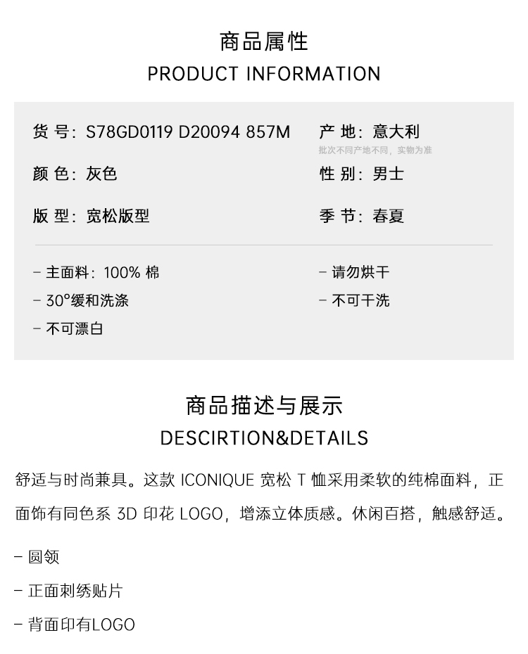 DSQUARED2 男士字母徽标印花棉质圆领短袖T恤 灰色 S78GD0119 D20094 857M