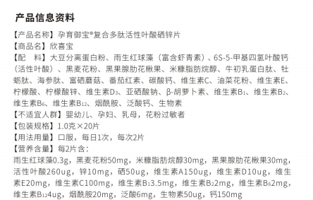 欣喜宝 孕育御宝牌复合多肽活性叶酸锌硒片