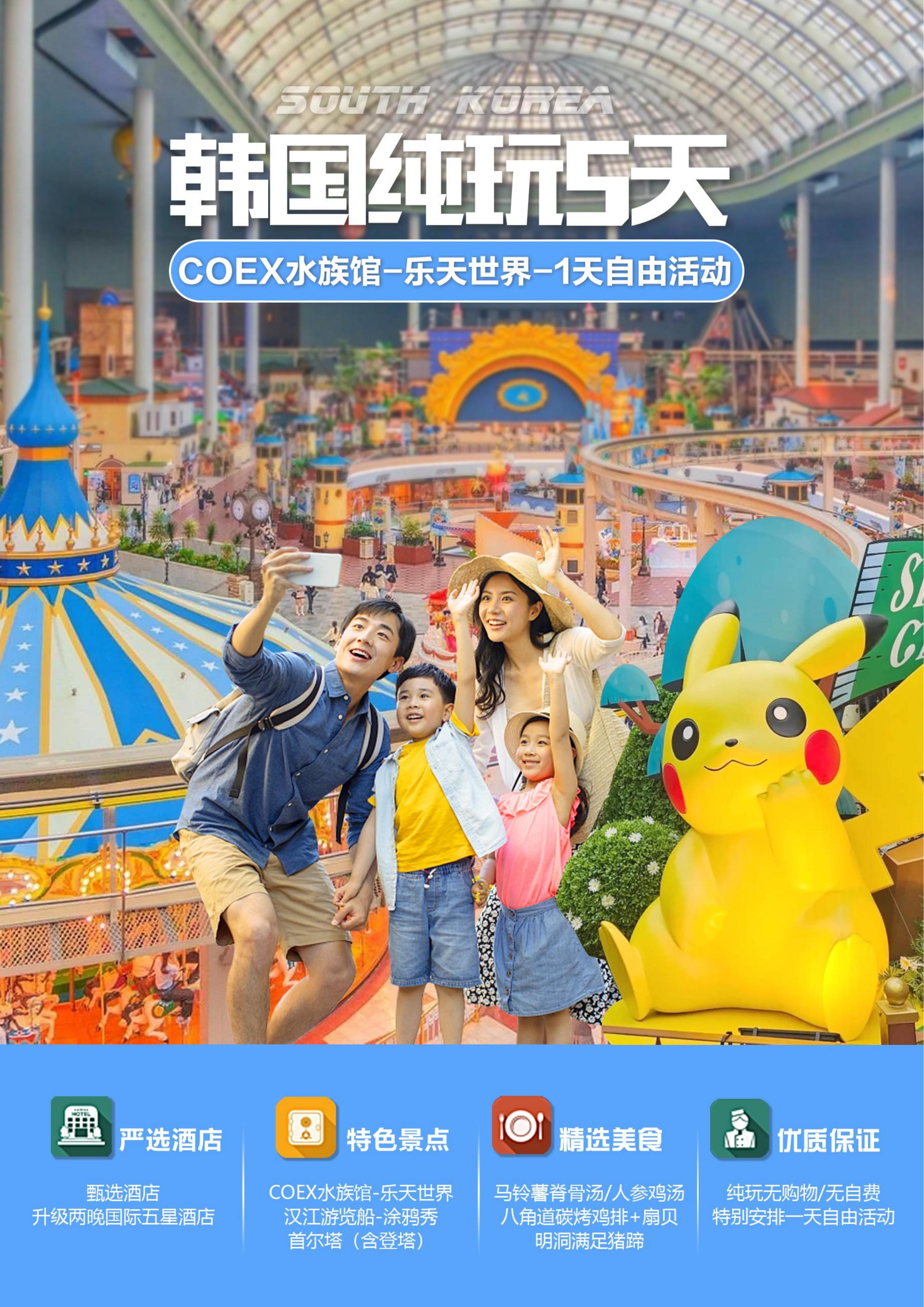 【春节、寒假】<韩国5天亲子团-深圳直飞往返>穿韩服游景褔宫、北村韩屋村、南山公园+N首尔塔(含登塔)、涂鸦秀、COEX水族馆、乐天世界(含通票)、星空图书、明洞、首尔1天自由活动、松月洞童话村
