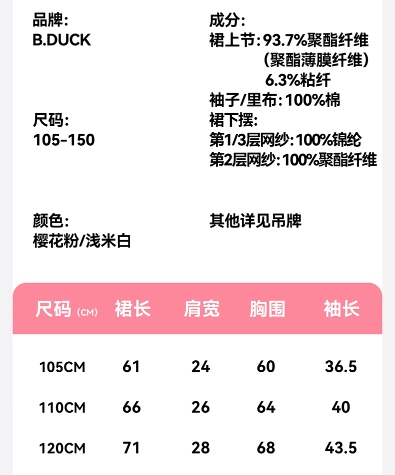 B.Duck小黄鸭童装春秋连衣裙105-150 FF3580050