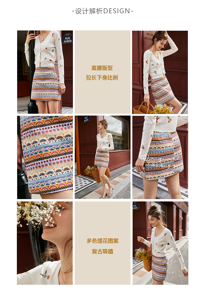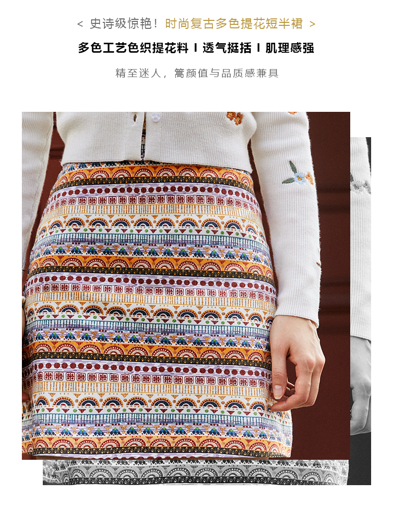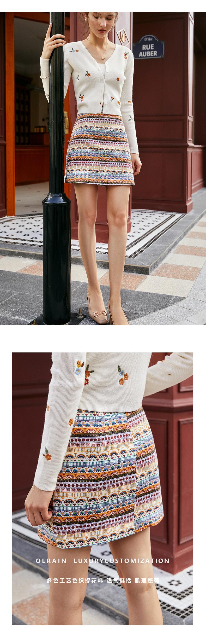 欧芮儿花色半身裙女新款2021高腰显瘦复古提花民族风A字短裙