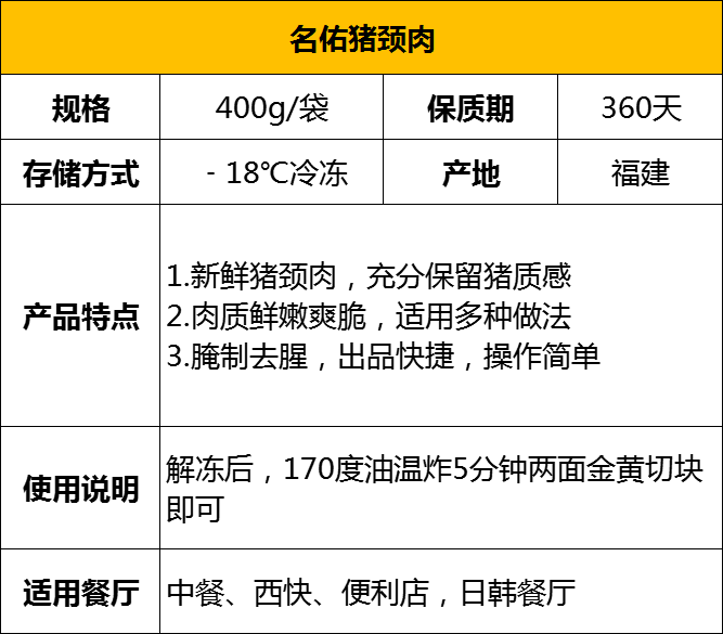 名佑猪颈肉400g腌制猪颈烧烤炭烤秘制烤肉半成品冷冻韩式新鲜商用(顺丰发货)