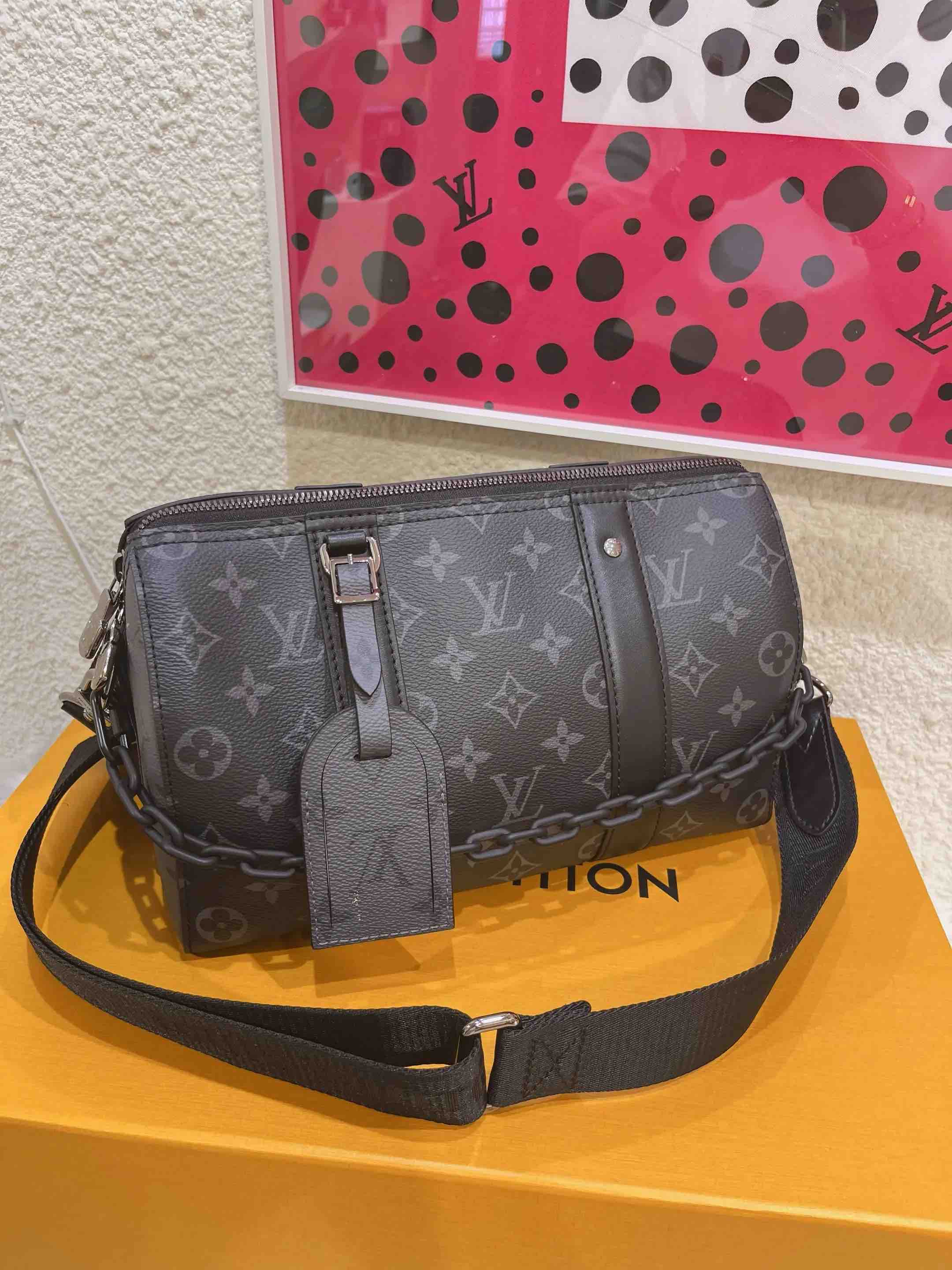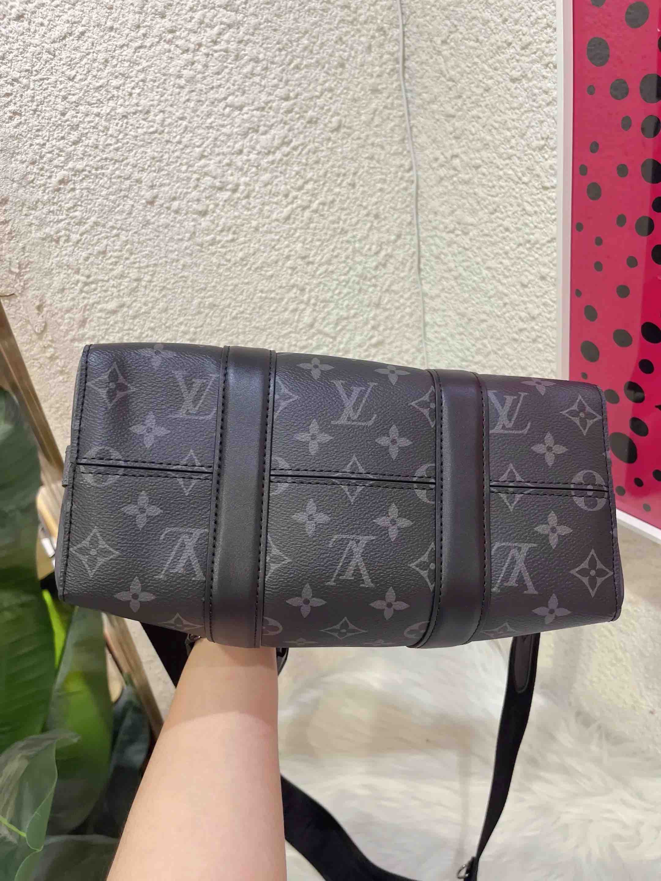 【商品详情】正品二手 LV Keepall City 黑武士 斜挎包🖤97 新 27×17 芯片款 配件:行李挂牌 肩带 盒子。稀缺黑老花 男女同款
