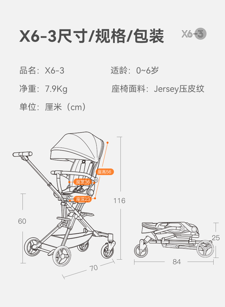 Playkids遛娃神器婴儿推车+遮阳棚X6-3