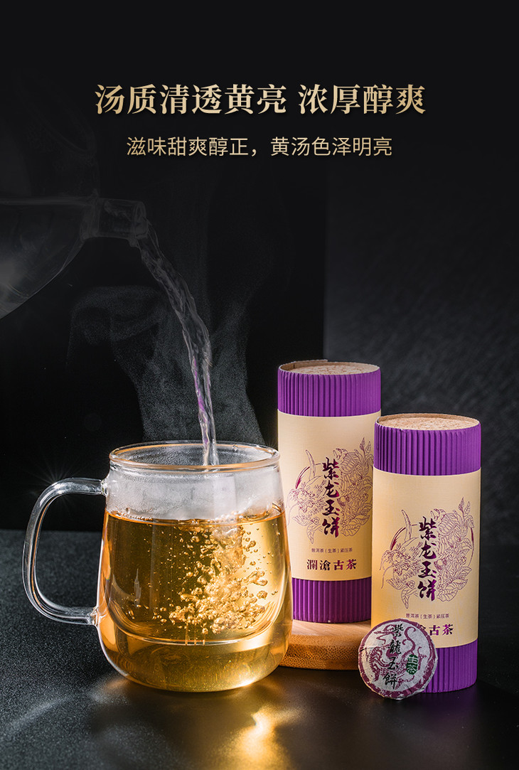 【38女王节预售】澜沧古茶 2020年紫龙玉饼礼盒装 云南普洱茶生茶熟茶