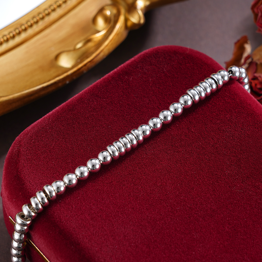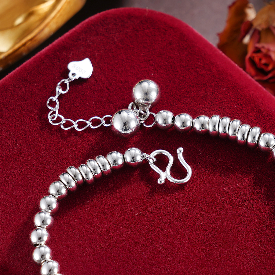 【寓意】:纯银圆珠经抛光处理后串连成链,于腕间勾勒出灵动的流线轨迹,折射出清雅韵致。举手投足,尽显优雅格调。