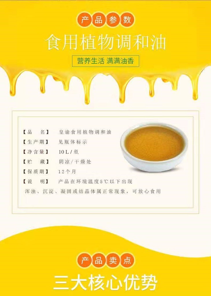 皇谕食用植物调和油(非转基因) 10L/桶