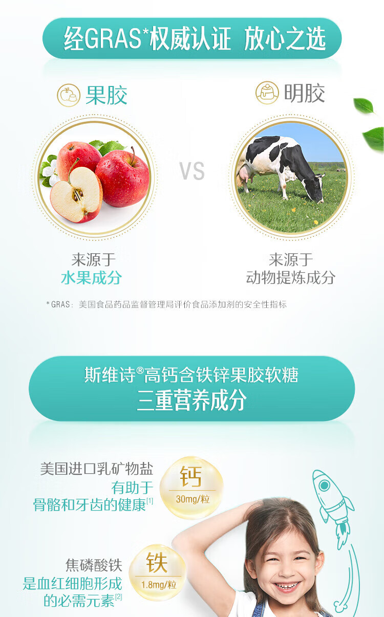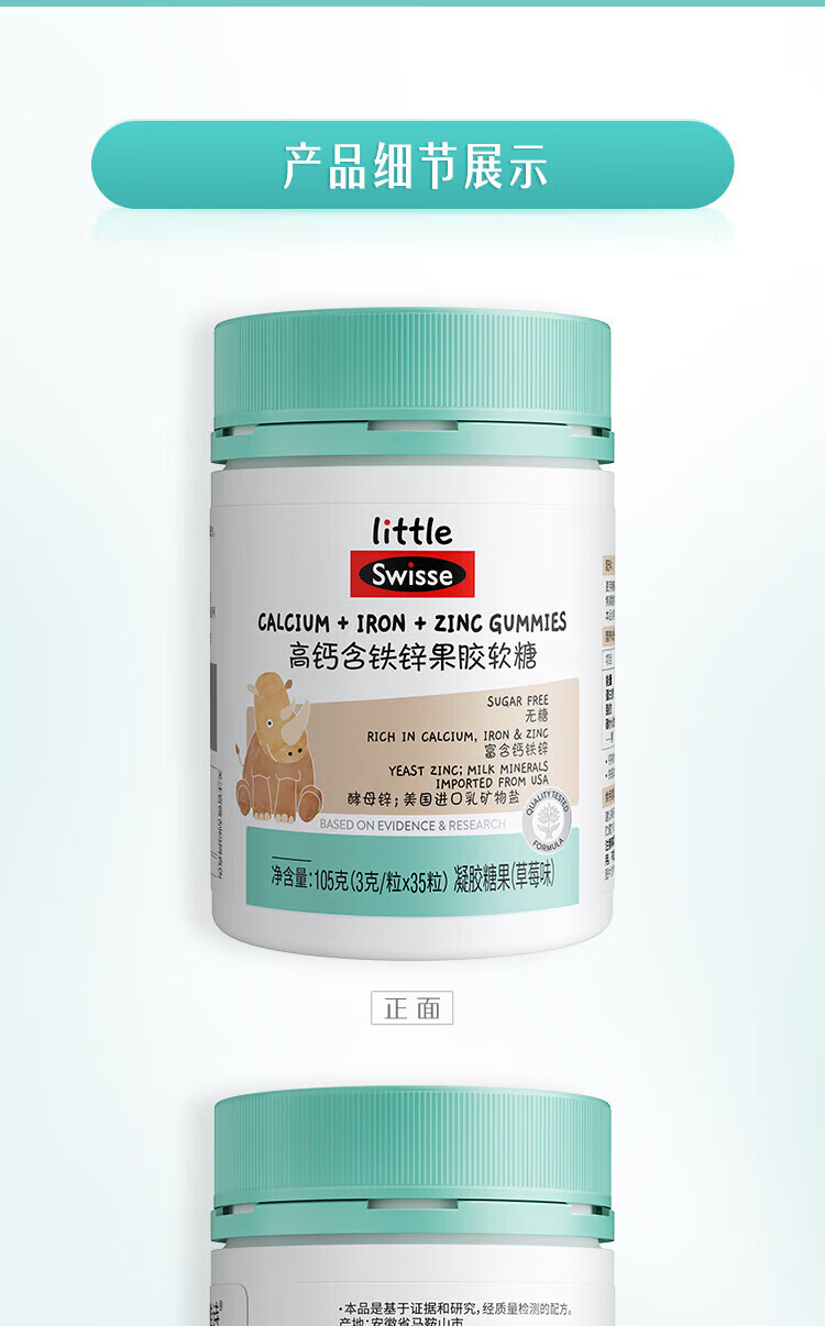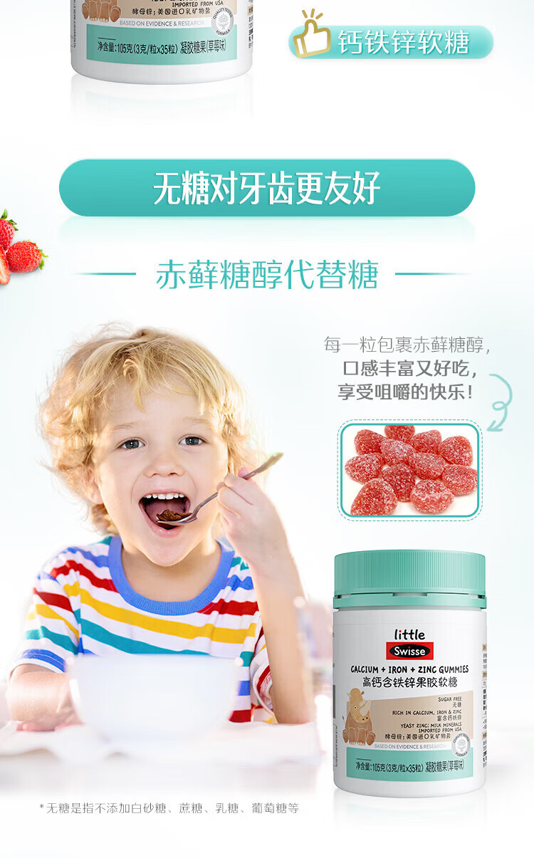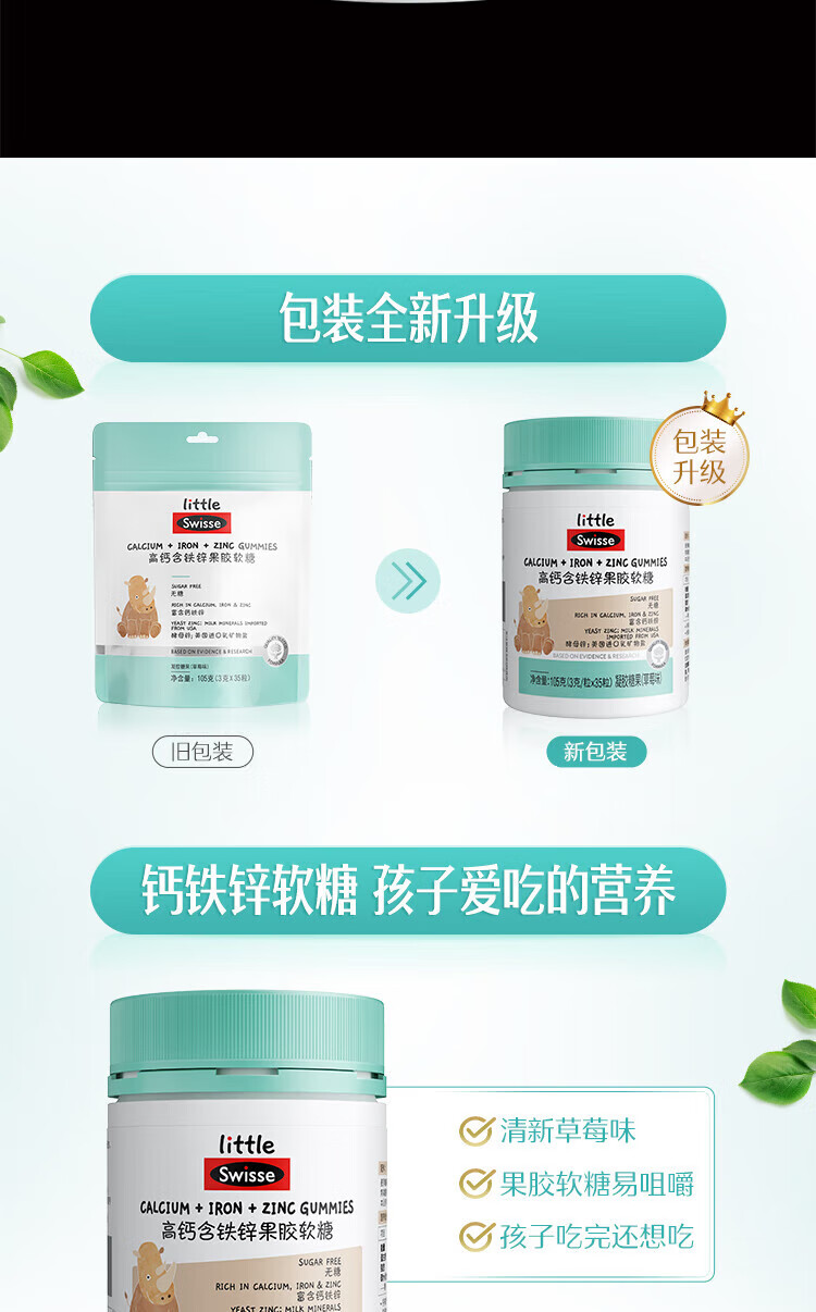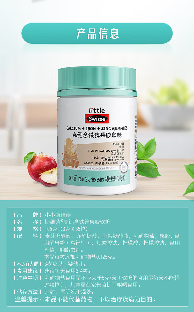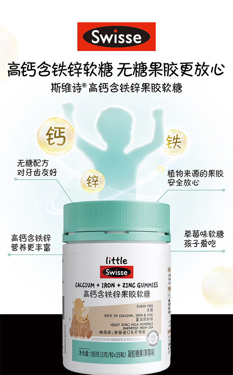 【国内版】Swisse 小小斯维诗高钙含铁锌果胶软糖35粒(草莓味)骨骼牙齿营养