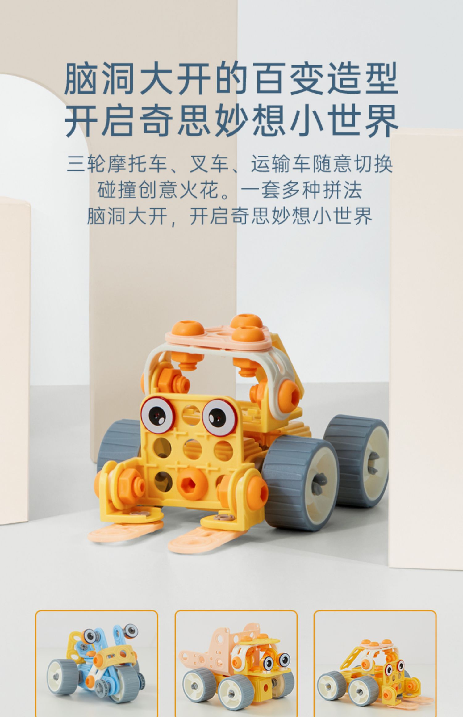 贝恩施儿童拼装玩具益智 男孩多功能汽车工程车模型小孩2-3-5岁