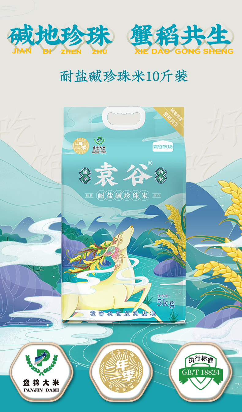 袁谷隆平芯米耐盐碱珍珠米5kg东北大米粳米10斤2025新米