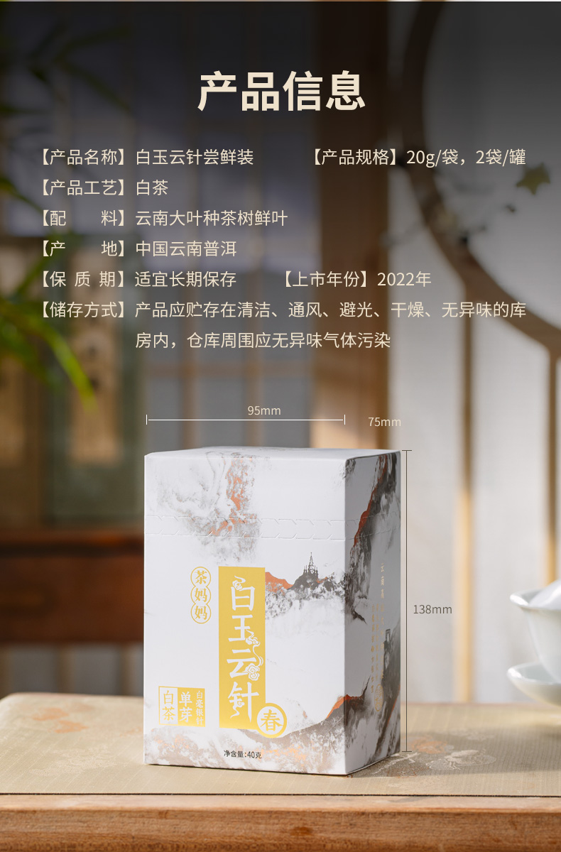 2022年澜沧古茶白玉云针尝鲜装40g
