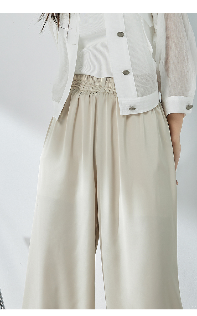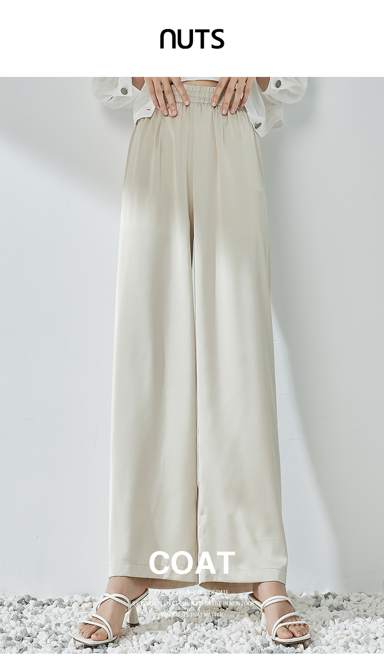 NUTS商场同款夏季纯色简约宽松松紧腰阔腿休闲长裤女325073313